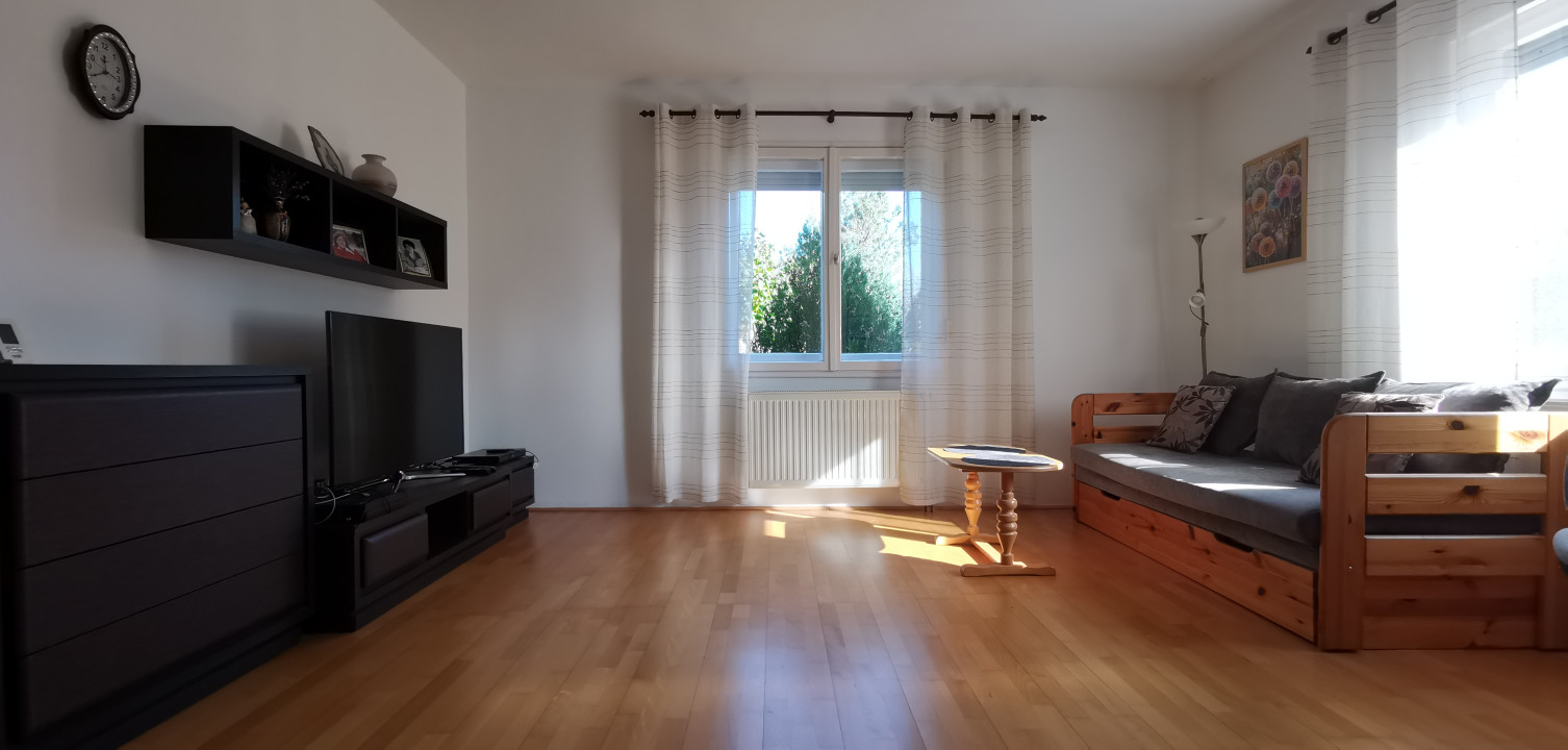 - 97 m2-es földszint három tágas szobával, konyhával, étkezővel, fürdőszobával,