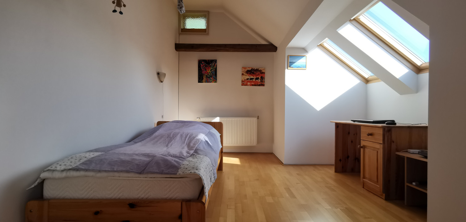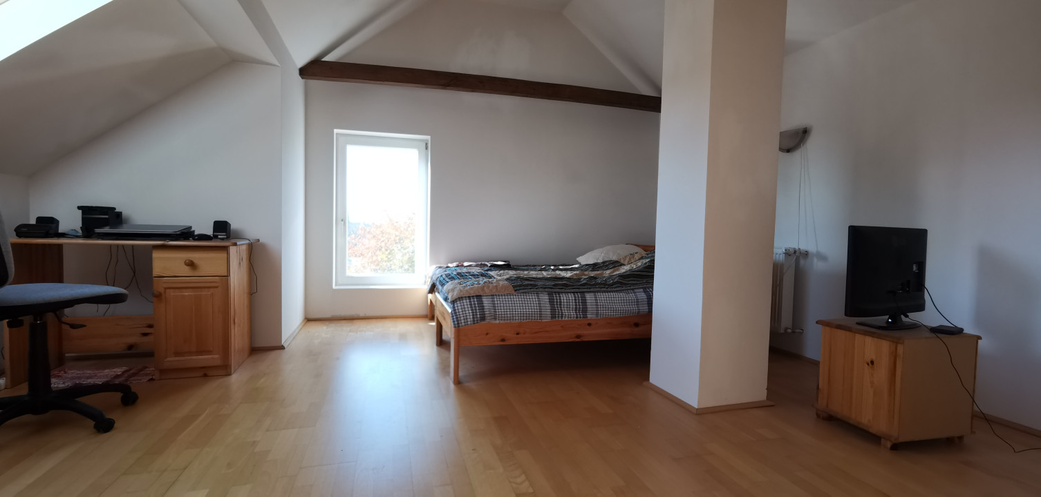 - 60 m2-es tetőtér két szobával, fürdővel és kialakítható vendégrésszel.