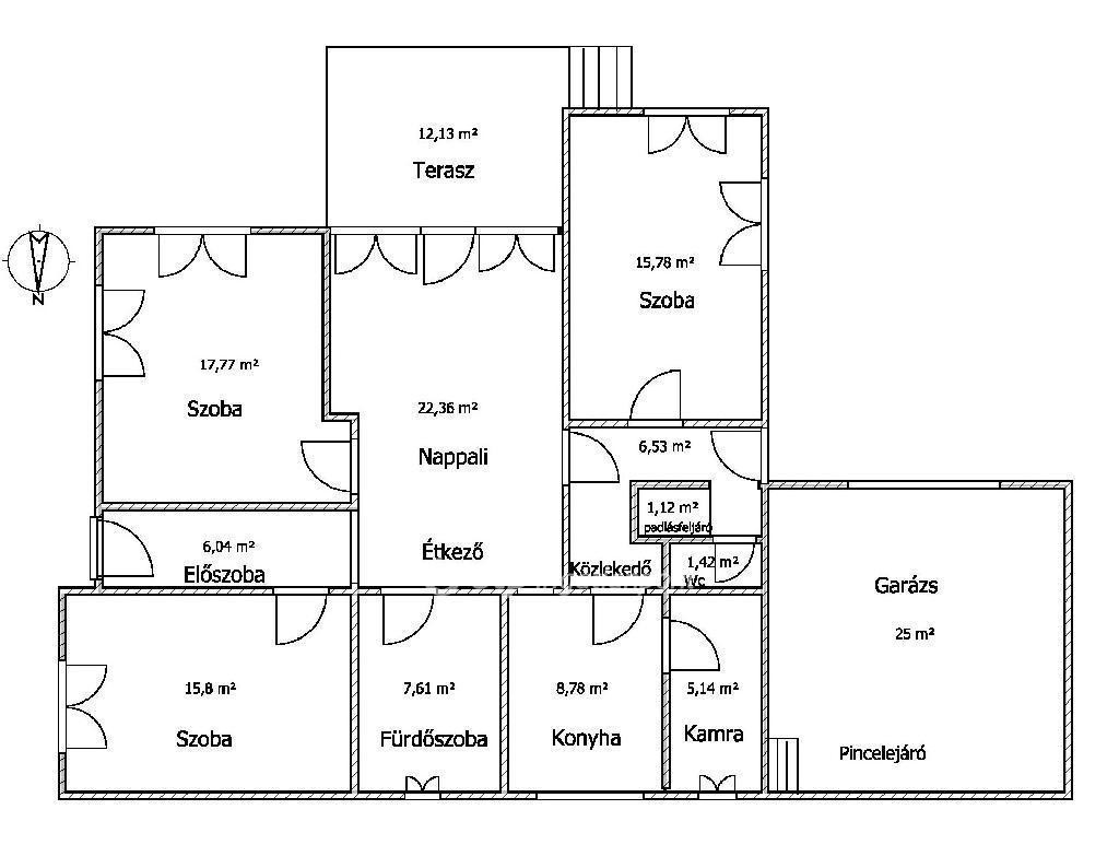 A ház alatt 23 m2-s száraz pince van, melyet a 25 m2-s garázsból lehet megközelíteni.
