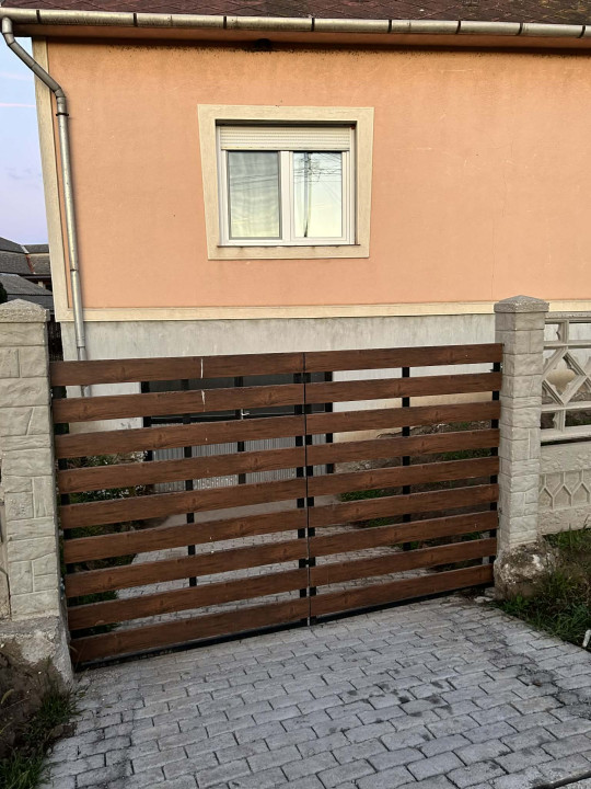 Az 516nm udvar éppen tökéletes méret: lehet használni, de nem kell sokat dolgozni a karbantartásával. Kint található egy épített kutyakennel, a kerítés háziállatbiztos. Idén nyáron kapott 2 új nagykaput és 1 kiskaput.