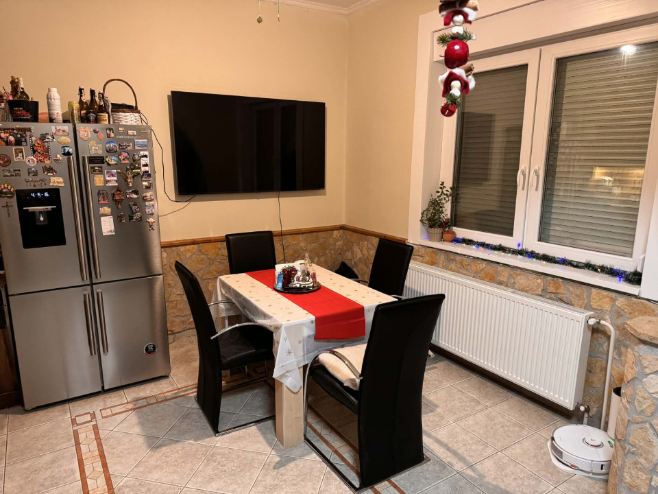 A házba lépve a konyha-étkezőbe érkezünk, ahol új konyhabútor található többfunkciós mosogatócsappal, elektromos sütővel és főzőlappal, valamint egy praktikus spejz-szekrénnyel, melyek a vételár részét képezik. A konyha fényes, jól szellőztethető 2 ablakkal, az itteni elektromos hálózat újonnan lett kiépítve.
