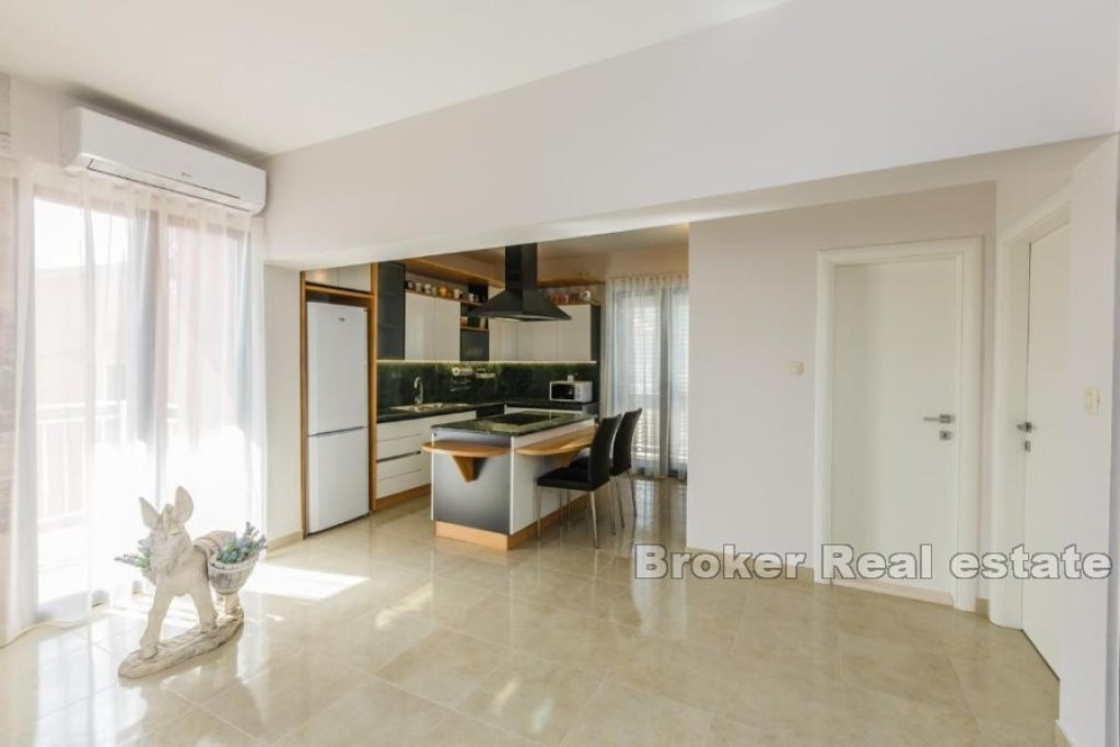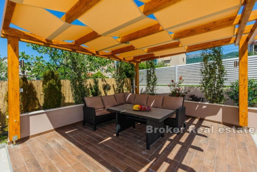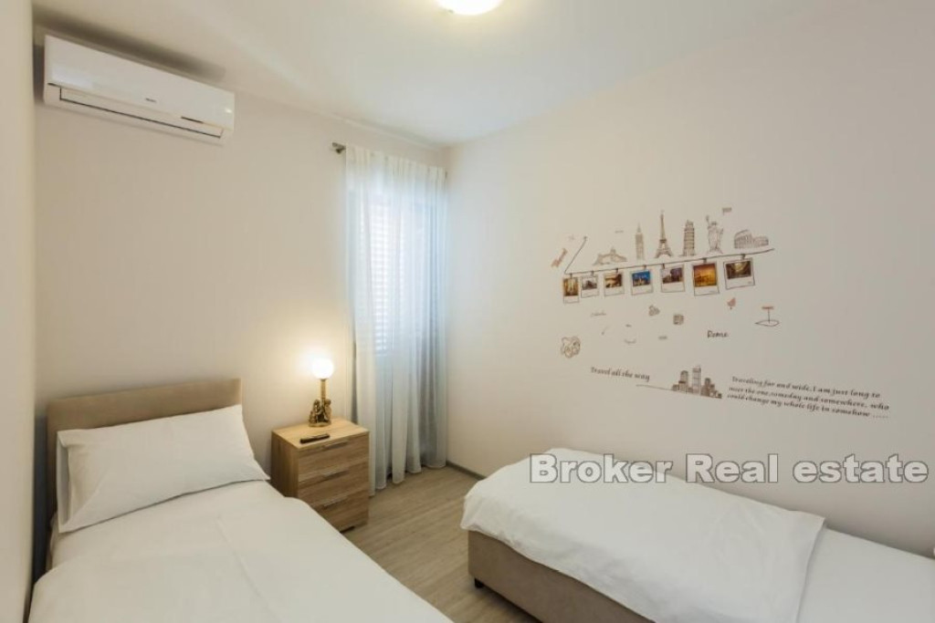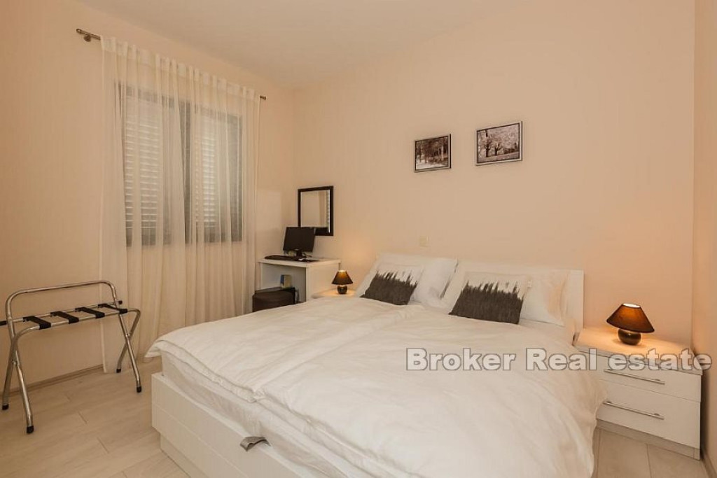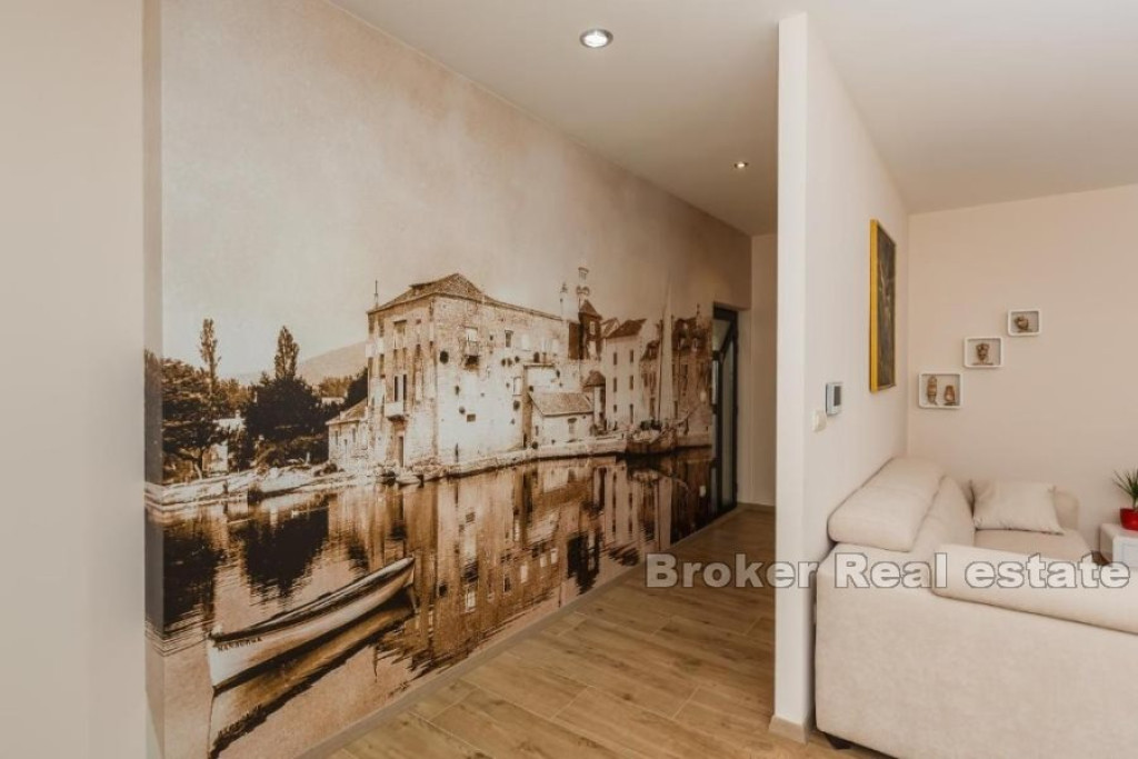 A house for sale in Kaštela with a living area of ​​420 m2, located on a plot of land of 712 m2. The house is located in a beautiful location overlooking the sea, only 150 m from the beautiful beach. The house is equipped with all amenities for a comfortable life and vacation, such as a swimming pool, sauna, gym, and children’s playroom. The house consists of 3 floors and a basement where there is a sauna, a bathroom, a children’s playroom, a tavern and a wine cellar. On the ground floor there is a kitchen with a dining room, a living room, 2 bedrooms, with bathrooms and a storage room. The ground floor has a separate exit to the terrace of 45 m2. The floor on the first floor is a separate apartment in which there is a kitchen with a dining room, a living room, a terrace, 1 room, a bathroom and a separate toilet. The second floor consists of 4 bedrooms, 3 bathrooms and a large playroom with access to the terrace. The house is sold fully furnished. The proximity of the beautiful beach and all essential facilities for life, such as restaurants, shops, cafe bars, make this house ideal for living as well as for renting for tourist purposes. BROKER REFERENCE ID:2033/09