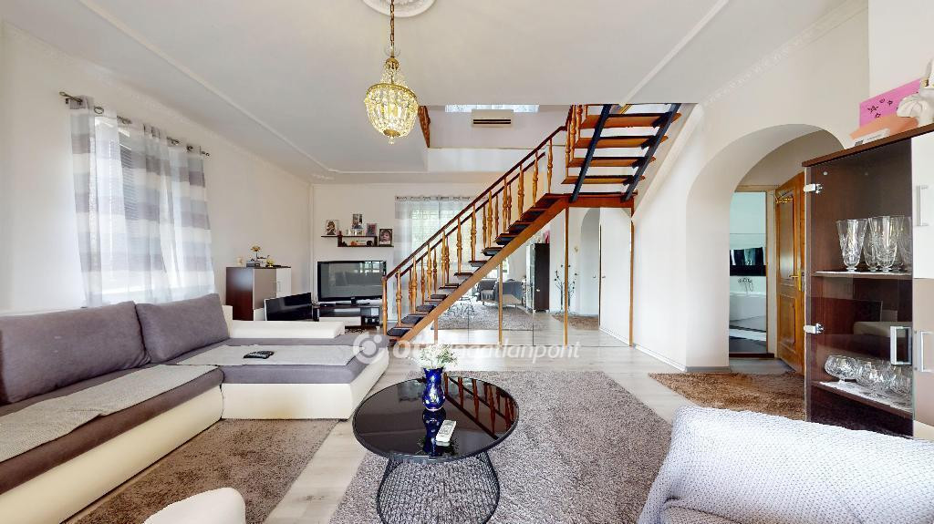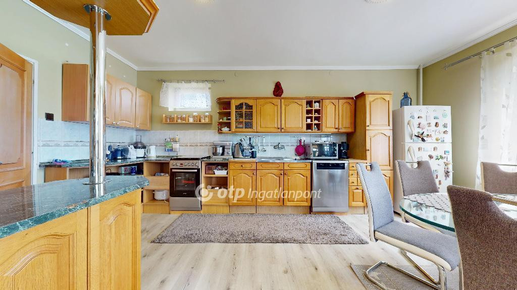 Dupla komfortos, KLÍMÁS, SZAUNÁS, 2 szintes családi házat kínálok eladásra 2 fedett terasszal, 2 garázzsal, gyönyörű panorámával a környező dombokra! Az ingatlan 1980-ban épült szilikát és tégla falakkal, műemlék pala tetővel, fa hőszigetelt nyílászárókkal. Az otthon melegéről takarékos gázkazán, vegyes tüzelésű kazán és inverteres klíma gondoskodik, a meleg vizet villanybojler biztosítja. Az alsó szinten a teraszról nyílik a klímával felszerelt tágas nappali, itt található a nagy méretű konyha, spájz, fürdőszoba, az utóbbi sarokkáddal, zuhanykabinnal, és szaunával felszerelve. Az emeleten 2,5 szoba, fürdőszoba (zuhany, WC), és fedett terasz kapott helyet, ahonnan panorámás kilátás nyílik a környező dombokra. Az emeleten 2 szoba padlószőnyeggel, egy laminált padlóval burkolt. A ház alatt 2 nagy garázs, tárolók, WC. Az udvaron épített szalonnasütőhely, pihenősarok. Tökéletes választás lehet nagyobb családnak is.