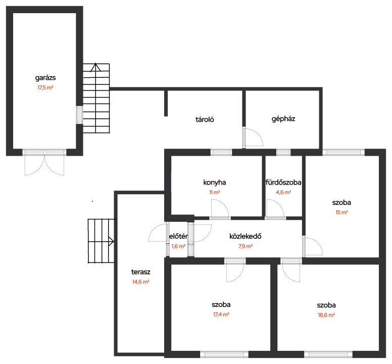 A szobák külön bejáratúak, nagyméretűek, élhető helyiségek, melyből kettő az utcafrontra, egy pedig a kertre néz. A szobákban laminált, egyéb helyiségekben kerámia padlóburkolat. A szobákban tapéta, fürdőben csempe falburkolat 1,8 m magasságig. A konyha tágas, kényelmesen használható.
