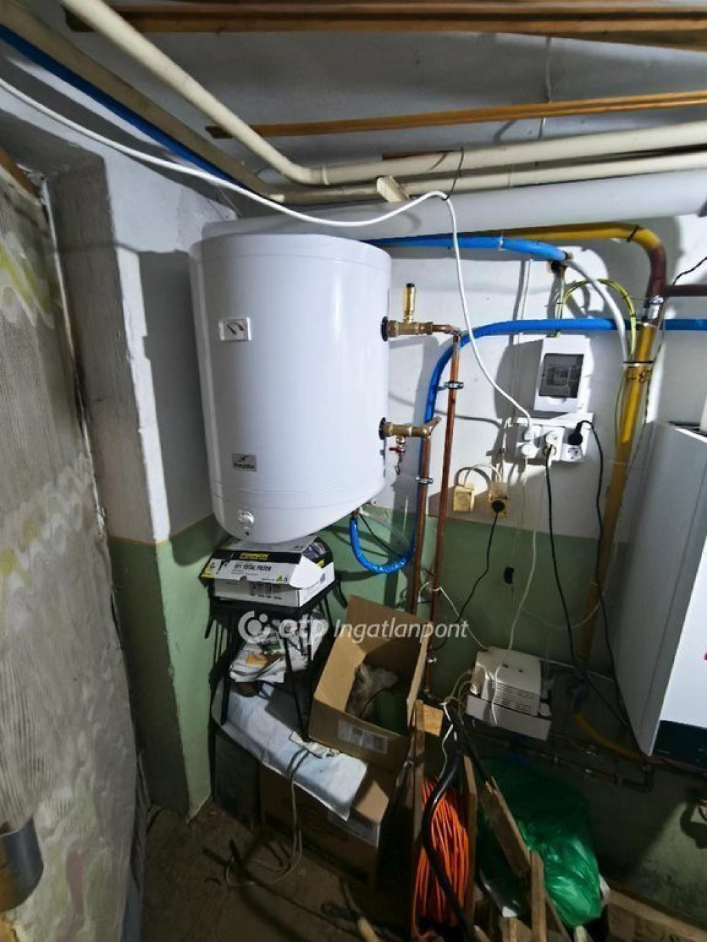 A fűtésről radiátoros hőleadással újonnan beépített gázkazán gondoskodik, amely a használati melegvíz előállítására is alkalmas, ugyanakkor jelenleg minden helyiségben villanybojler üzemel. Alternatív megoldásként vegyestüzelésű kazán is rendelkezésre áll. A kedvezményes gázmennyiség ? az éves 1700 m? ? ennél az ingatlannál duplán vehető igénybe, ami jelentős rezsicsökkentési lehetőséget jelent.