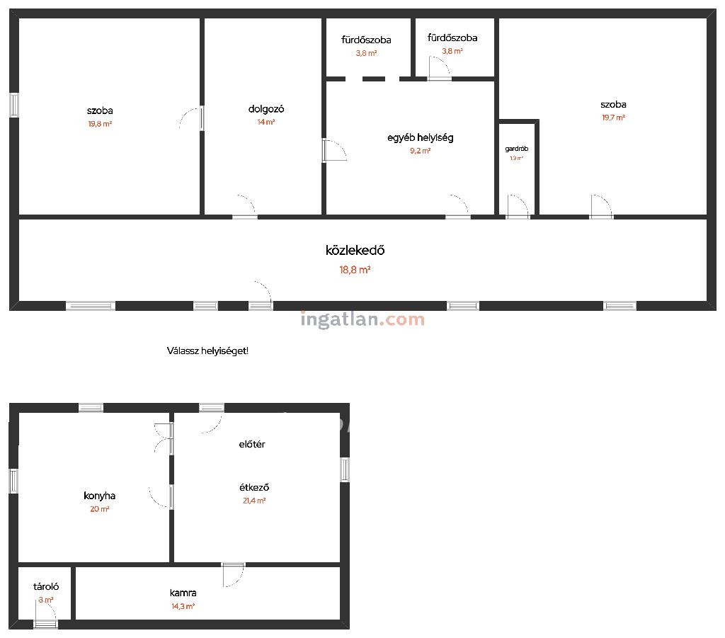 Kecelen kínálok eladásra egy 90 m2-es családi házat, valamint egy önálló 55 m2-es melléképületet, melyek akár két generáció egyidejű együttélésére is kiválóan alkalmasak. A főépület három szobával, fürdőszobával (WC-vel), különálló tusolóval, mosókonyhával, gardróbszobával és folyosóval rendelkezik. Az összes nyílászáró új, háromrétegű műanyagra lett cserélve. Fűtésről gáz-radiátorok, valamint egy hangulatos, fatüzelésű cserépkályha gondoskodik. A ház folytatásában egy hatalmas, nyitott tároló is található.