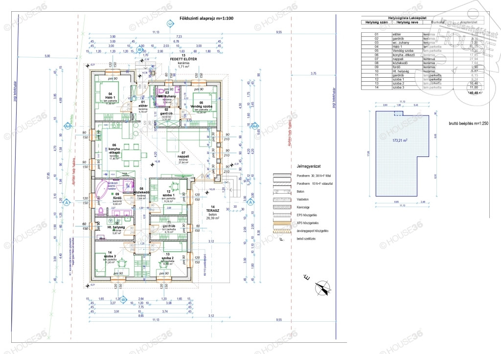 - nettó 140,48 m2 lakóház, 5 szoba+nappali+gardrób+2 fürdőszoba