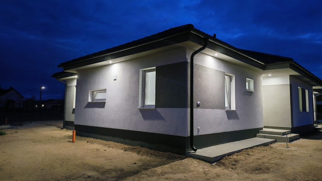 Kecskeméten 2026 tavaszán elkészült ikerház bal oldala, 93 nm-es, amerikai konyha nappali + 3 szobával, saját 375 nm-es telekkel eladó.