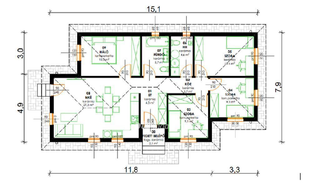 Bács-Kiskun vármegye, Kecskemét Alsószéktó részén 91 m2 hasznos alapterületű új építésű családi ház 470 m2-es telekrésszel Kecskemét legnépszerűbb lakóparkjában eladó! A lakópark 138 db családi házából több, mint 100 db már vevőre talált. Ne habozzon, ha álmai házát keresi! Adjon magának esélyt, ne maradjon le, hogy Ön is itt lakhasson! Az ingatlan közel a városhoz, mégis csendes, gyönyörű, ősfákkal körbeölelt területen helyezkedik el egy 90 000 nm-es lakóparkban, melyen egy 2000 nm-es közösségi tér is helyet kap a családok szabadidős tevékenységének helyszínéül. A lakópark elhelyezkedéséből adódóan madárcsicsergéssel teli, falusi csend várja lakóit. A házak 450-470 nm-es telekkel, 90-98 nm, 4 szoba + nappali elrendezésű kivitelben készülnek, melyek kulcsrakész átadása 10 hónapon belül várható. Gondosan megtervezett hőszivattyús megoldással biztosított a fűtés padlófűtéses hőleadással. Igény esetén napelem rendszerrel is kiegészíthető a ház gépészete a rezsi további csökkentése érdekében, illetve egy darab hűtő-fűtő klíma is beépítésre kerül ajándékul. Minden egyes ház megfelel a CSOK Plusz feltételeinek. Az ingatlan elhelyezkedése kiváló, a közelben minden megtalálható: többféle bevásárlási lehetőség, iskola, óvoda, élelmiszerbolt, egészségügyi rendelő, benzinkút pár perces autóúttal megközelíthető. A vásárlás finanszírozásában díjmentes tanácsadással, sorban állás nélkül, az OTP kedvezőbb kamatozású hitelkonstrukcióival, CSOK Plusz lehetőségével tudunk segíteni. Az adásvételi szerződés lebonyolításához korrekt ügyvédi közreműködést tudunk ajánlani. Amennyiben felkeltettem érdeklődését, hívjon bizalommal! Eladó ingatlanokat keresünk meglévő és külföldi partnereink számára!