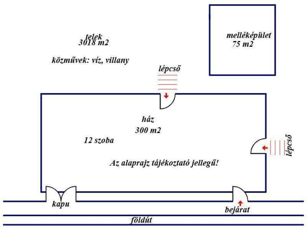 A házban 12 szoba, fürdőszobák, konyha, padlás, közlekedők találhatók. Ezen kívül nagy udvarral és egy melléképülettel is rendelkezik, amiben szintén több szoba került kialakításra.