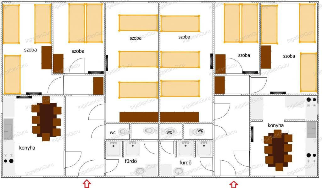 Az ingatlanban 3 szoba, konyha, étkező, kamra, fürdő wc kialakítva.