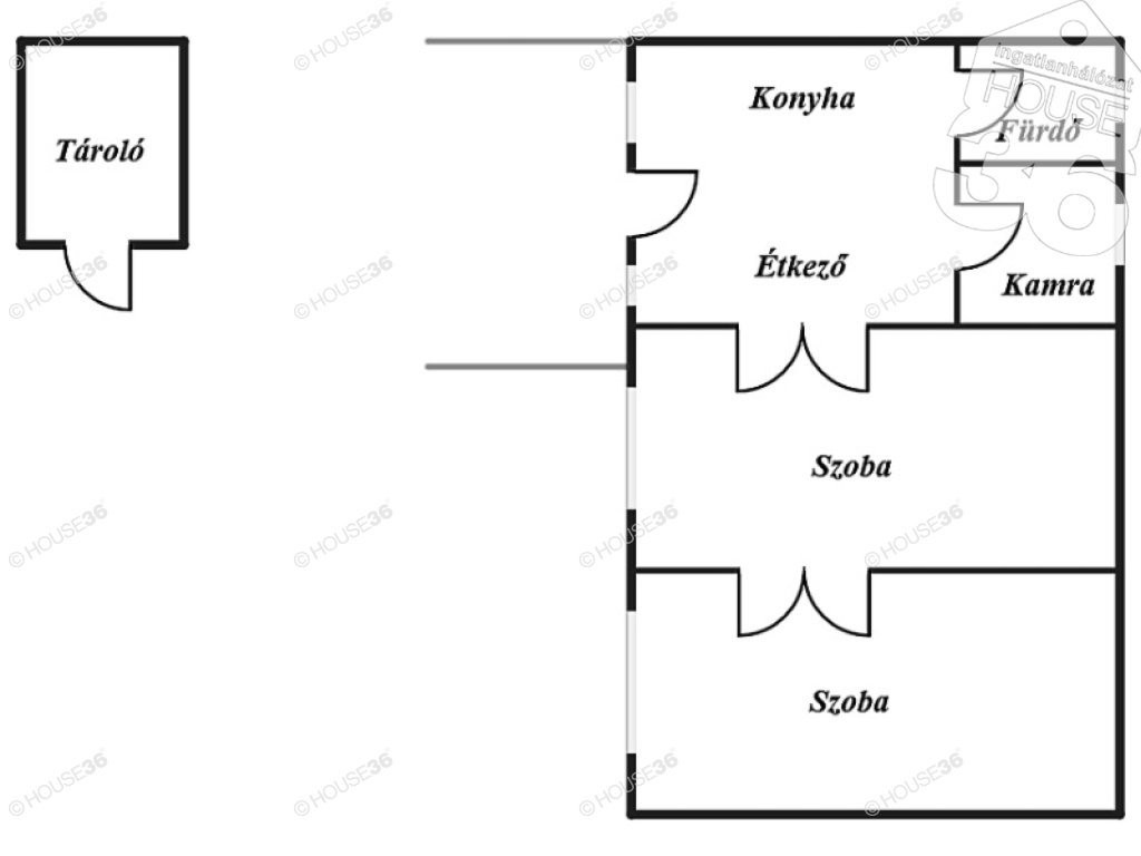 - 2 szoba, konyha, étkező, fürdő, toalett, kamra