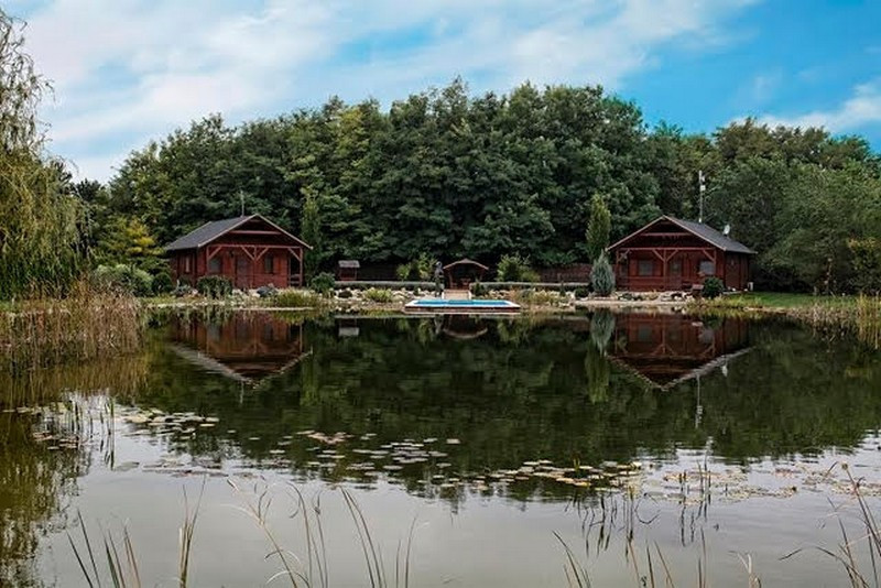 - két hangulatos faház a tó partján /egyenként 60 m2en/, barátoknak, üzlettársaknak, családtagoknak nyújthat kikapcsolódást, vagy állandó lakhatást.