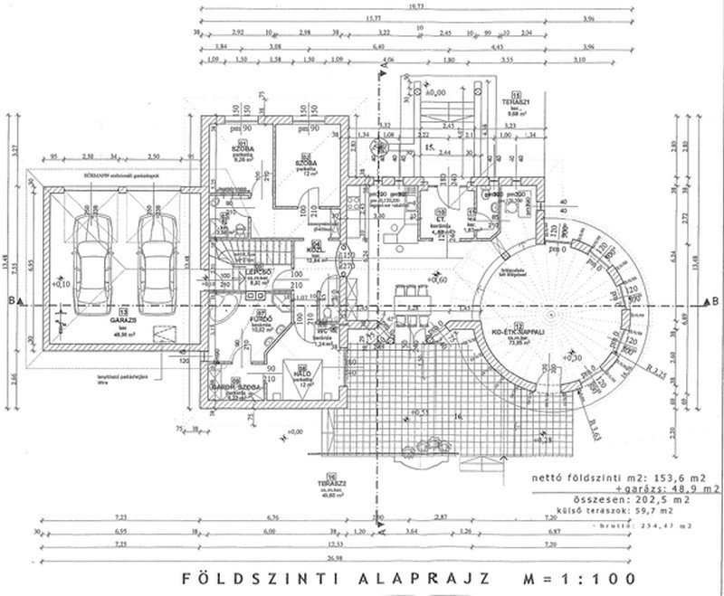 -teraszok: 80 nm, garázs: 49 nm