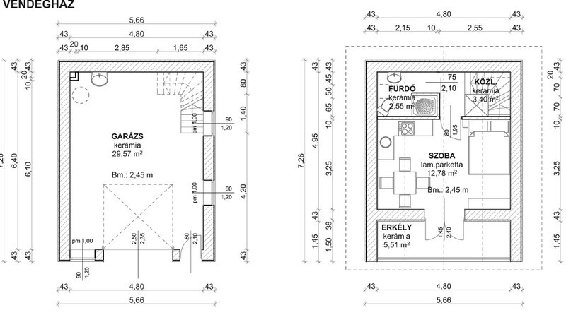 - vendégház: ami kétszintes, földszinten garázzsal.