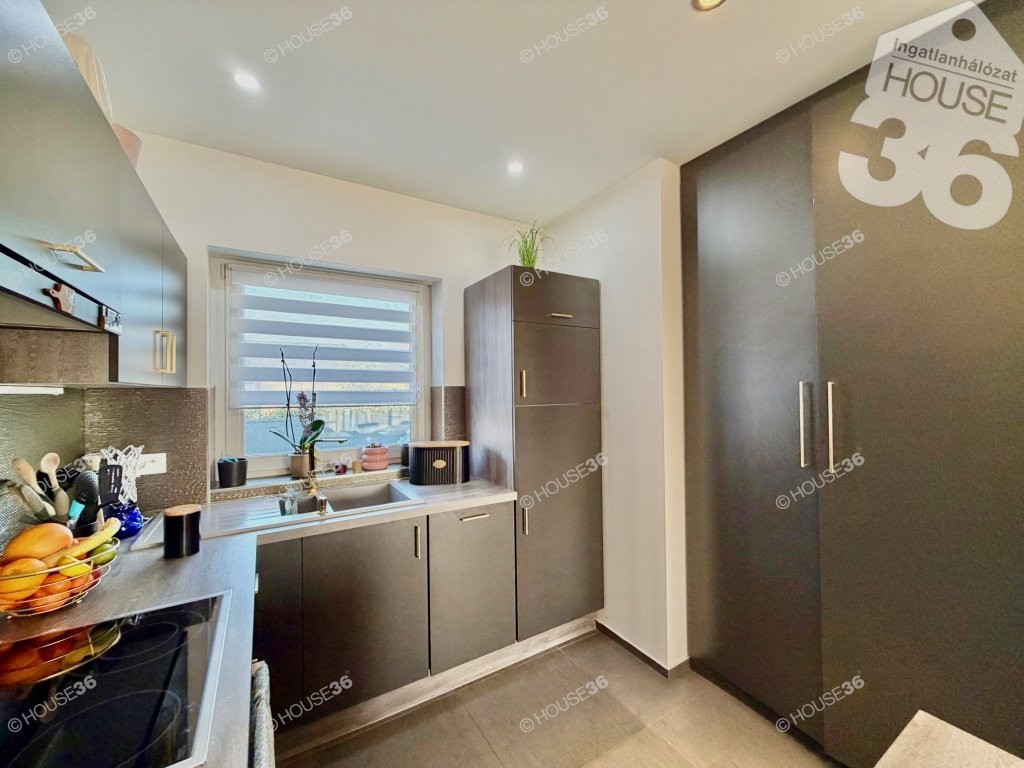- Beépített, gépesített konyhabútor (hűtő-fagyasztó, főzőlap, sütő, mosogató)