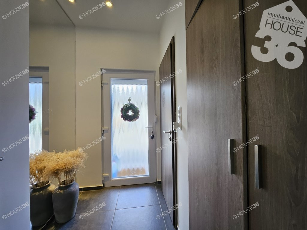 Kecskeméten, Kadafalva elején, 2019.évi, szigetelt, tégla építésű, 75 m2-es, nappali+ 2 szobás szélső sorház, saját nagyobb kerttel, garázzsal és zárt udvari beállóval eladó! Akár teljesen bútorozva (benne jacuzzi, finn szauna).