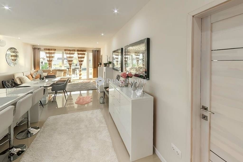 Kecskemét családi házas övezetében eladó egy 2020-ban épült, 124 m²-es, igényesen megtervezett prémium otthon, tágas nappali + 2 teljes lakosztállyal (háló–gardrób–fürdő–WC), háztartási helyiség, kamra és vendégmosdó biztosítja a kényelmet.
