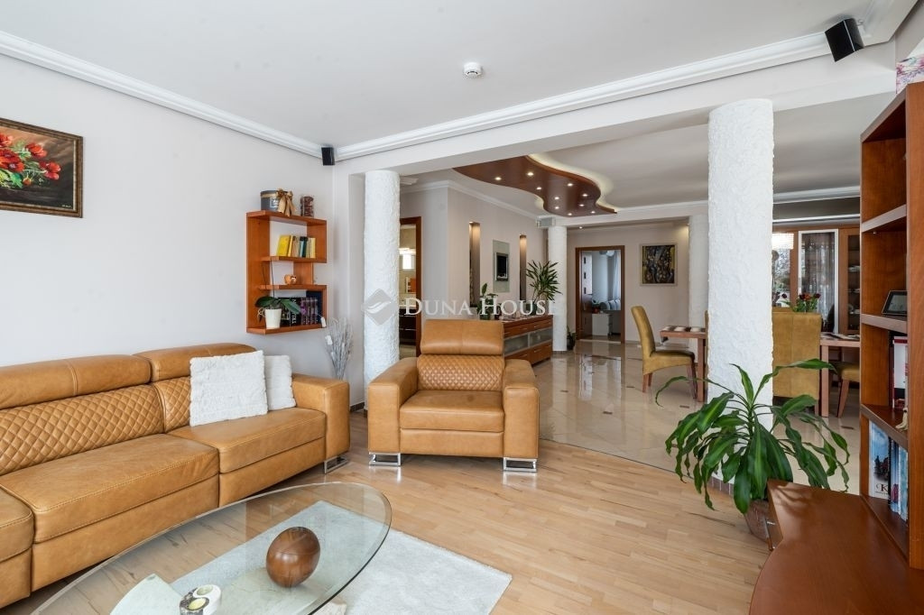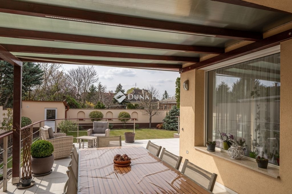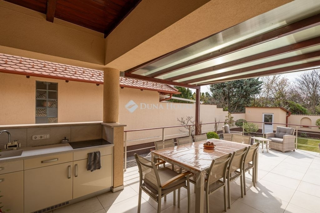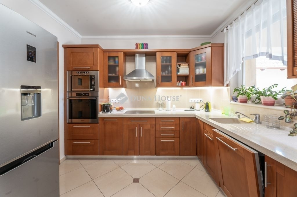 Eladó Kecskemét Hollandfaluban magas minőségben megépített összesen: 269 nm-es, nappali + 3 szobás, napelemes családi ház, lakható pincével, jakuzzival, szaunával, dupla garázzsal, 473 nm önálló telken. Tudatos tervezés, élhető terek. Lakótér 135nm, garázs 32nm, pince 50nm, teraszok 65nm elosztásban + 60nm tetőtér beépíthető. Az ingatlan tervezésénél és a belső terek kialakításánál elsődleges szempont volt a világos, tágas élettér megteremtése, valamint a kerttel való közvetlen kapcsolat biztosítása.Az épületben közvetlenül az utcáról megközelíthető 32 nm-es, kétállásos garázsba érhetünk, valamint a lakóépület alatt 50 nm-es lakható pince, ami alkalmas további tárolónak, közösségi szórakoztató helynek is. A padlástér további beépítésre alkalmas, kiépített lépcsővel, közműkiállásokkal, 2-3 szoba és fürdő kialakítására.Főbb jelllemzők:- 50 nm-es tágas világos amerikai konyha + nappali-étkezővel- 3 külön nyíló hálószoba- gardrób- egyedi gyártású fa beltéri ajtók és beépített bútorok- 10kW-os szaldós napelem rendszer van kiépítve, ami bővíthető, mivel 17kW-os inverterrel szerelt és engedélyezett- gázcirkó központi fűtés- riasztó, kamera- automata öntözőrendszer a kertben- teraszba sülyesztett jakuzzi- infra szauna carbon - red light, 3 személyes- elektromos garázskapu- műanyag nyílászárók, redőnyökkel és szúnyoghálóval- szigetelt az épületA részben fedett terasz biztosítja a pihenést, kikapcsolódást, grillezési élményt. Egy fárasztó nap után a kényeémes jakuzziban lehet felfrissülni.Személyes megtekintésért és bővebb információért várom megtisztelő hívását!