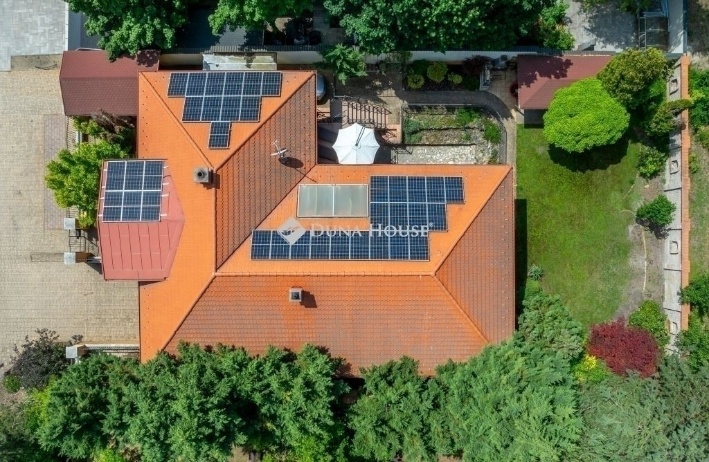 A ház modern műszaki megoldásokkal is büszkélkedhet, többek között napelemekkel (15kW-os), amelyek jelentősen csökkentik a rezsi költségeket.