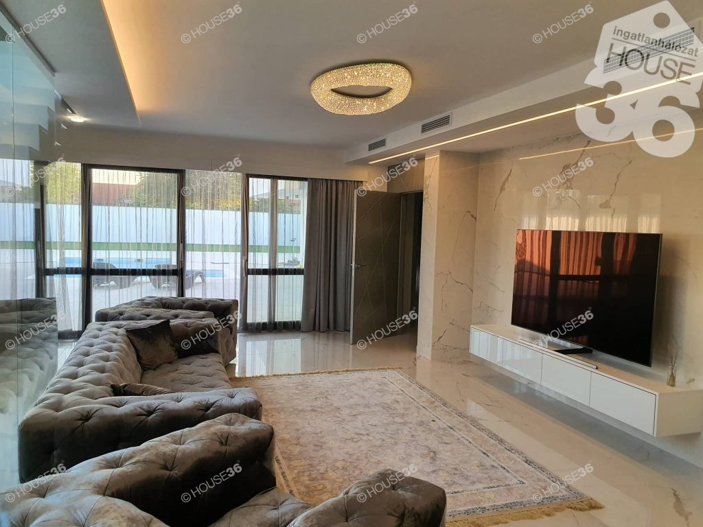 Eladó egy 180 m2-es, modern luxusvilla egy 1000 m2-es, parkosított telken, saját dupla garázzsal ( 40 m2).