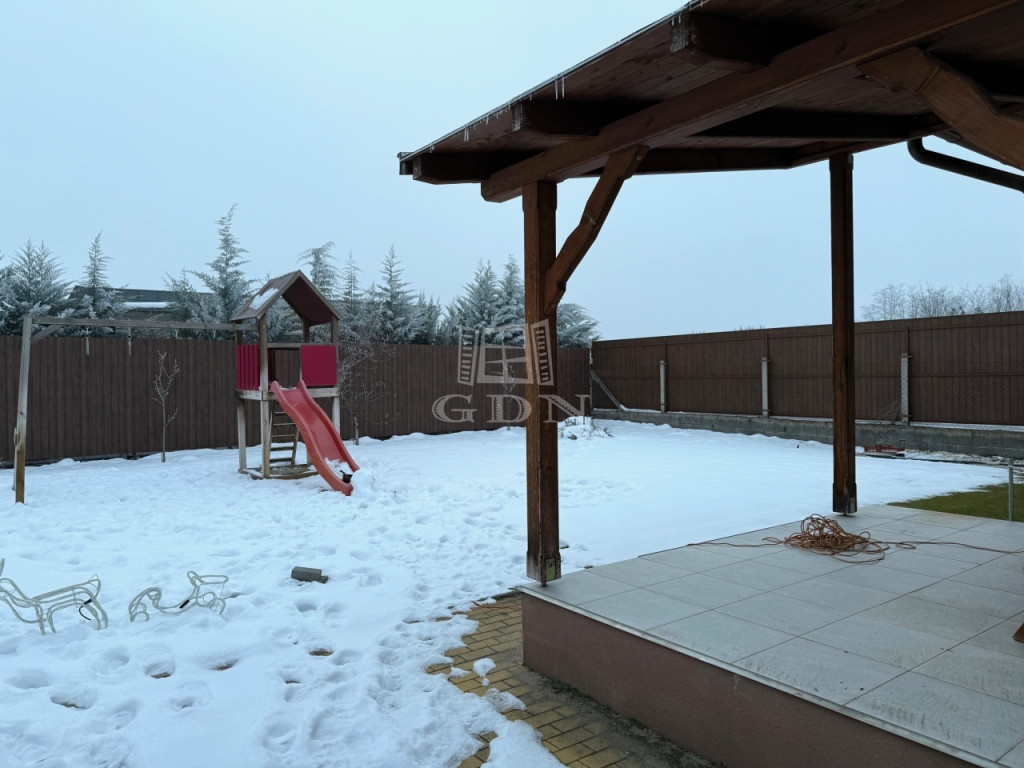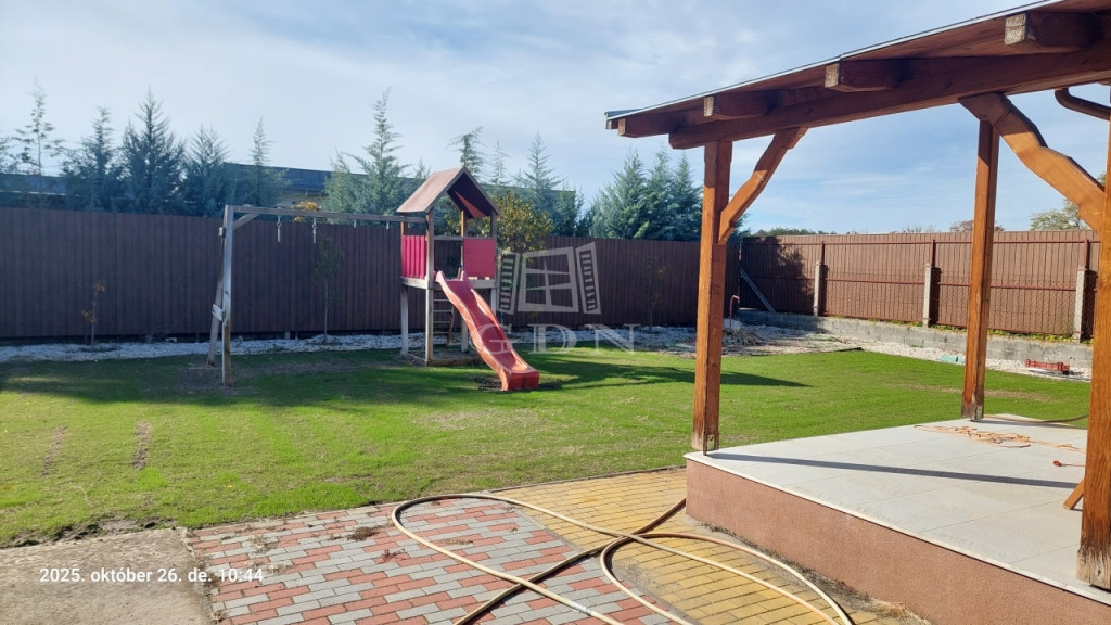 A kert újonnan füvesített, öntözőberendezéssel ellátott, mely fúrt kútról is üzemeltethető. A telken található még fedett gépkocsibeálló, kerti tároló, kis gyermekjátszótér. Az ingatlan tehermentes, 2-3 hónap múlva birtokbavehető. ...TOVÁBBI, TÖBBEZRES INGATLAN KÍNÁLAT: - GDN azonosító: 391896