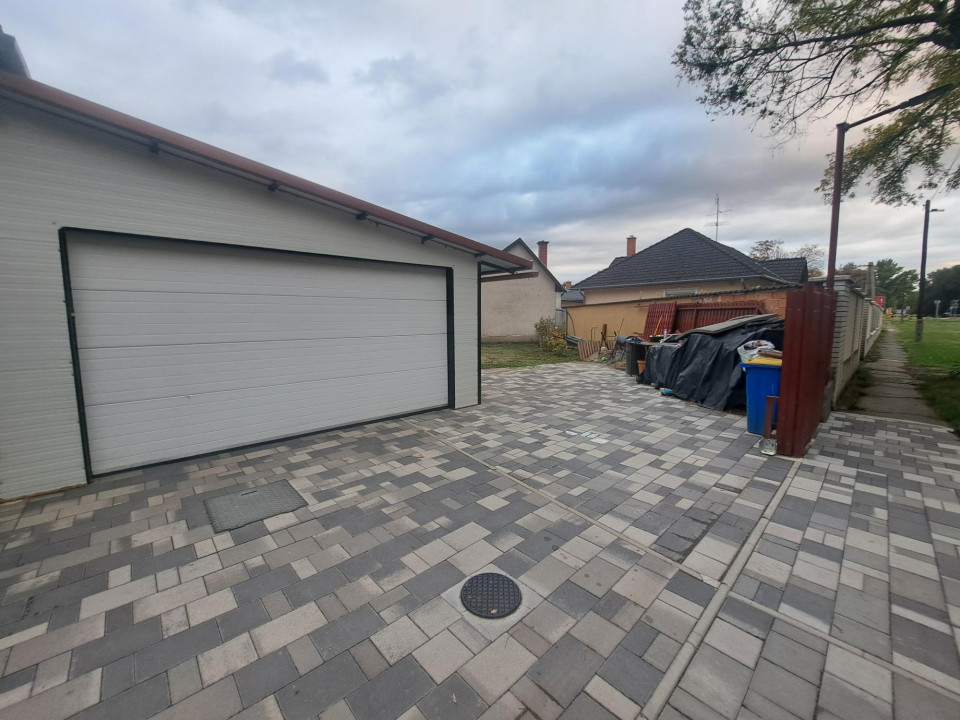 - cca 32 m2-es hőszigetelt szendvicspanelből készült garázs, ami fűthetővé alakítható ( csövek behúzva csak rá kell kötni a kazán körre), automata ajtóval 4 méter széles lamellákkal