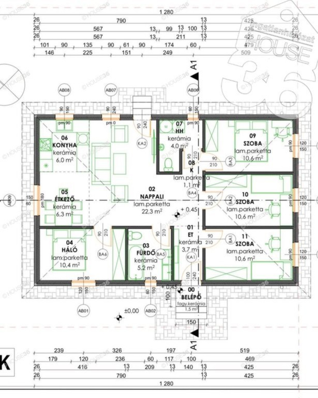 2024-ben épült, letisztult, modern nappali + 4 hálószobás családi ház, 106 m2 bruttó alapterület + 18 m2 fedett terasz