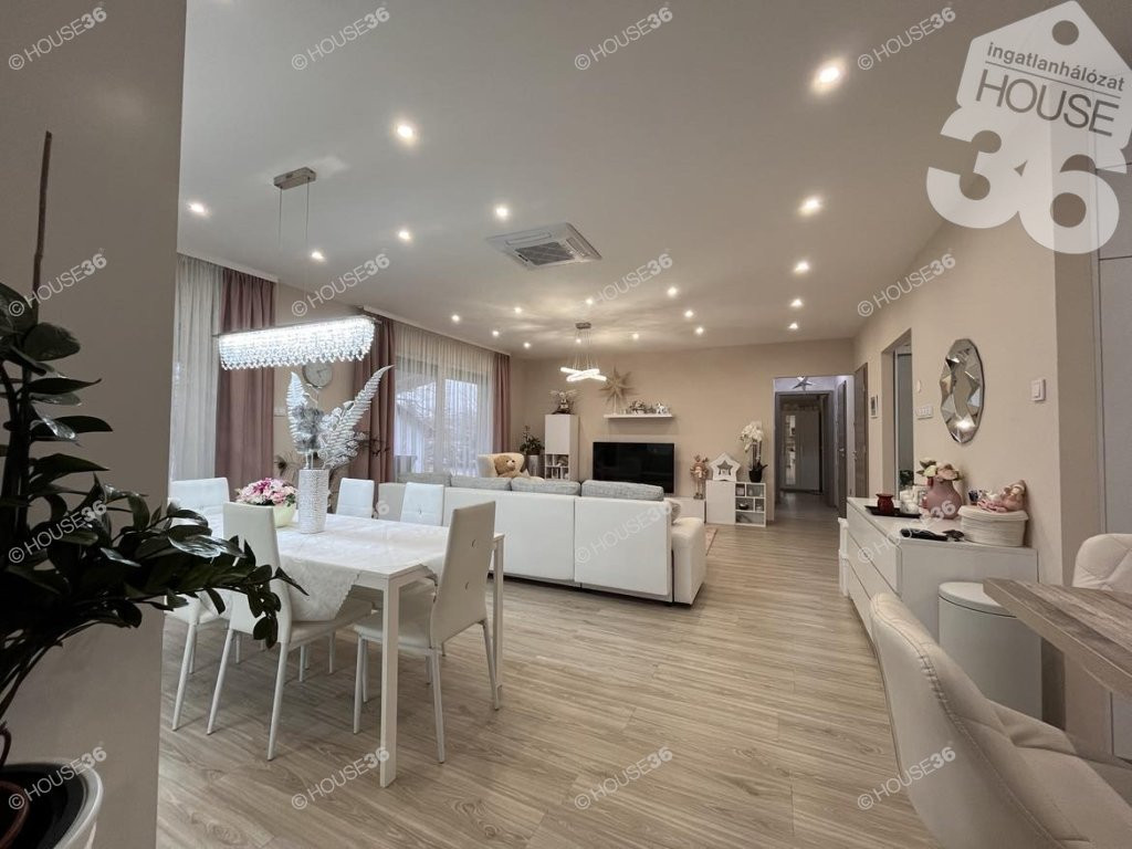 Kecskemét egyik legkeresettebb kertvárosi övezetében, autópálya és bevásárlóközpont közelében, ugyanakkor egy csendes, forgalomtól mentes, szomszédmentes, privát utcában kínálunk eladásra egy 2022-ben épült, teljesen újszerű,kiemelkedő műszaki tartalommal rendelkezőcsaládi házat. Az ingatlan 120 m2 lakóterű, nappali + 4szobás + gardróbszobás, 2 fürdőszobával, 32 m2-es két terasszal és egy 1500 m2-es, parkosított telekkel.