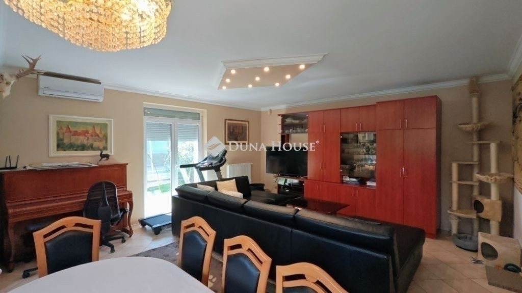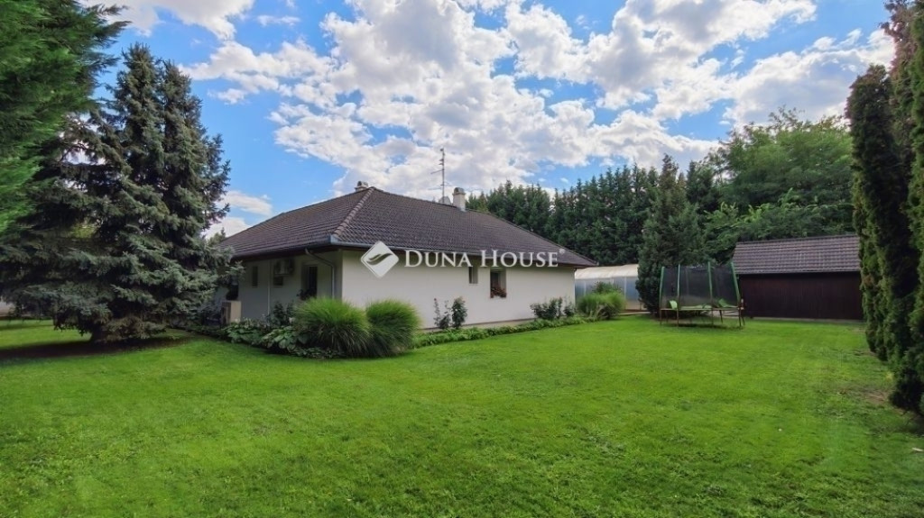 Kecskemét újabb kertvárosi részén, AUTÓPÁLYA ÉS BEVÁSÁRLÓKÖZPONT KÖZELÉBEN, NAPELEMES, MEDENCÉS, nappalival és 3 szobával rendelkező, 102 nm-es családi ház, parkosított telken eladó.