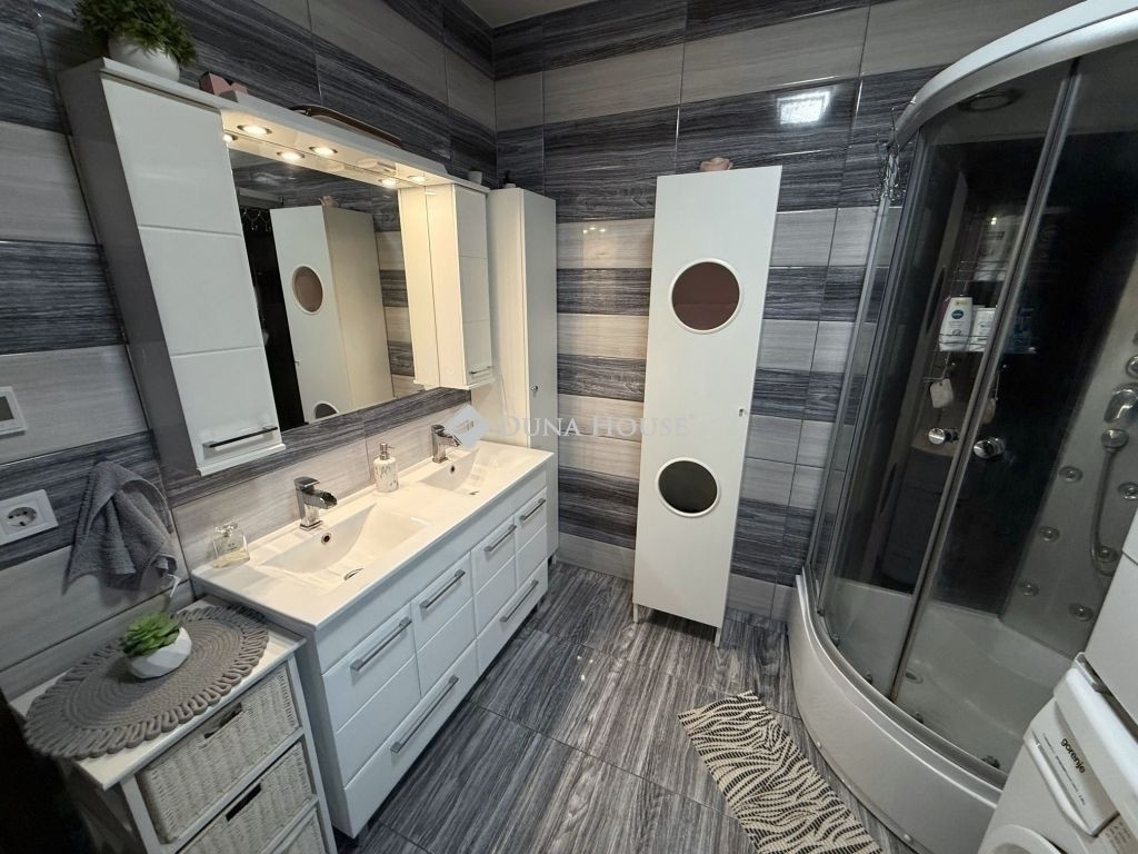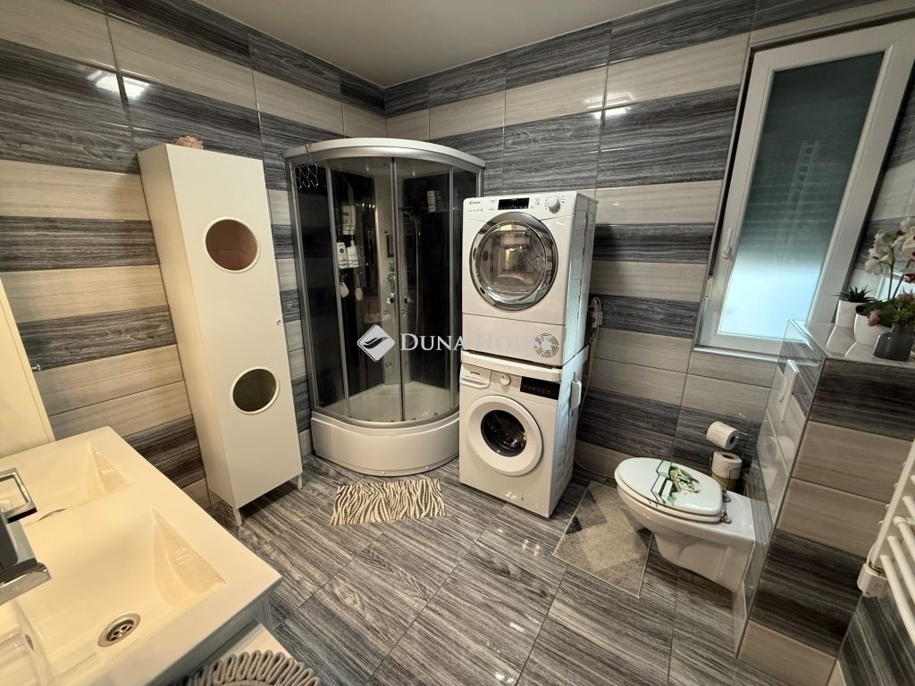 Az ingatlan szinte új állapotú, nagyon jó izléssel kialakított, praktikus elrendezésű. Mindezek mellet korszerű és energiatakarékos is, az 5.6 kW-os napelem rendszernek a magas minőségű hang és hőszigetelt nyílászáróknak, és modern építési módnak köszönhetően.