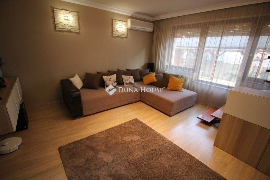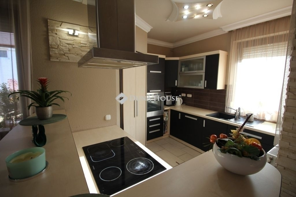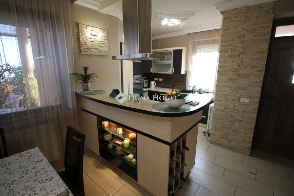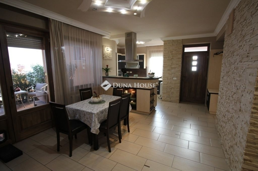 Eladó Kecskemét Katonatelepen található teljesen parkosított 876 m2-es telken található kétszintes, nettó 103 m2-es, nappali+3 szobás, TÉGLAÉPÍTÉSŰ,SZIGETELT családi ház! A ház belső kialakítása kivételes családi hangulatot ad így egy hangulatos otthona lehet gyors birtokbaadással.Az alsó szinten nagy üvegfelülettel határolt világos nappalli közvetlen kapcsolódik a konyha-étkező részhez ami kivételes térérzetet ad, ezen a szinten található 2 db hálószoba és egy világos fürdőszoba külön wc-vel is illetve a fedett terasz kapcsolat a ház központi részéből közelíthető meg.Az emeleti szintet pár évvel ezelőtt építették be és itt egy kivételes nagyságű hálószoba és egy nappali található ami alkalmas további szoba kialakítására is.Nagyméretű garázs (33 m2) akár alkalmas további lakóépületrész kialakítására is ha valakinek fontos lenne egy többrendbeli ingatlan vagy otthoni üzleti tevékenység végzése céljából.Az ingatlan fűtésrendszere két megoldással lett kialakítva, egy gáz (cirkó) fűtésrendszerrel illetve egy vegyestüzelésű alternatívával, hogy a családi erdőgazdasági lehetőséegit is tudják hasznosítani. Mivel a ház a jelenlegi szabványoknak is szinte teljes mértékben megfelel így nem kell a fűtésszámla miatt aggódniVarázslatos hangulatú udvart teljesen parkosították, automatizált öntözőrendszert telepítettek és baráti összejövetelekre fedett kiülővel és kis halas tóval álmodták meg amit teljesen árnyékolt több 10 éves növényzettel határolt. Az udvarban minden tárolási lehetőség adott így kivételesen rendezett érzettel rendelkezik. Páratlan lehetőségnek tartom azoknak a vásárlókank akik egy igazán családias otthont szeretnének és nem akarnak bajlódni a felújítás és korszerűsítés gondjaival.Az ingatlan hiteezhető és megfelel minden jelenleg hatályos kedvezményes hitelfelvételi konstrukciónak!