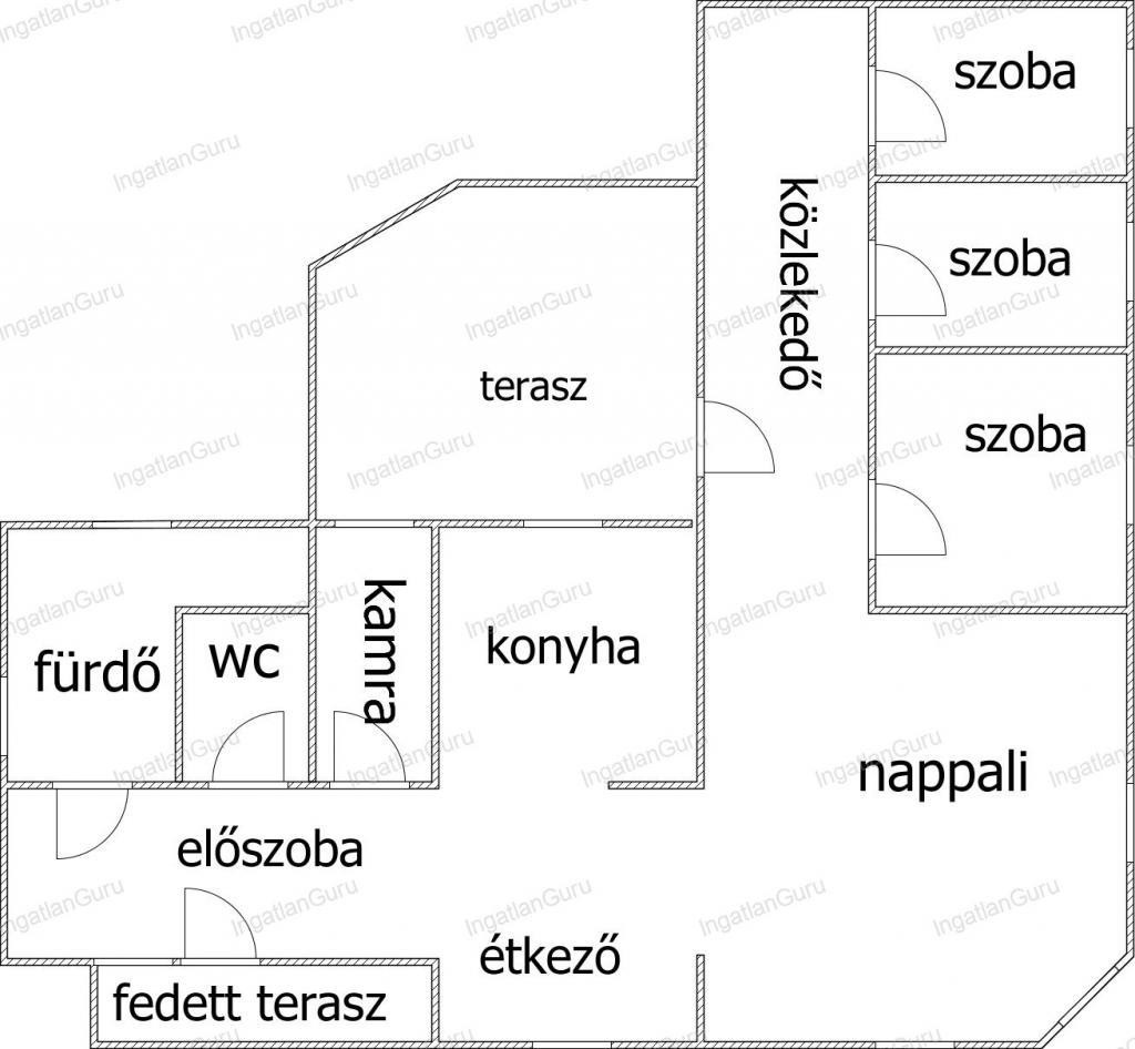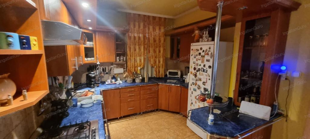 A lakótérben nappali + három szoba, nagy konyha, kamra, étkező, fürdő, wc külön.