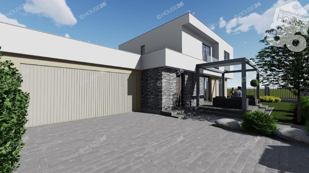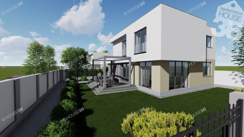Az összközműves utcában található, 334m2-es telekre egy 109,4 m2-es prémium minőségű 2 szintes házat terveztek 20 m2-es garázzsal, 17 m2-es terasszal.