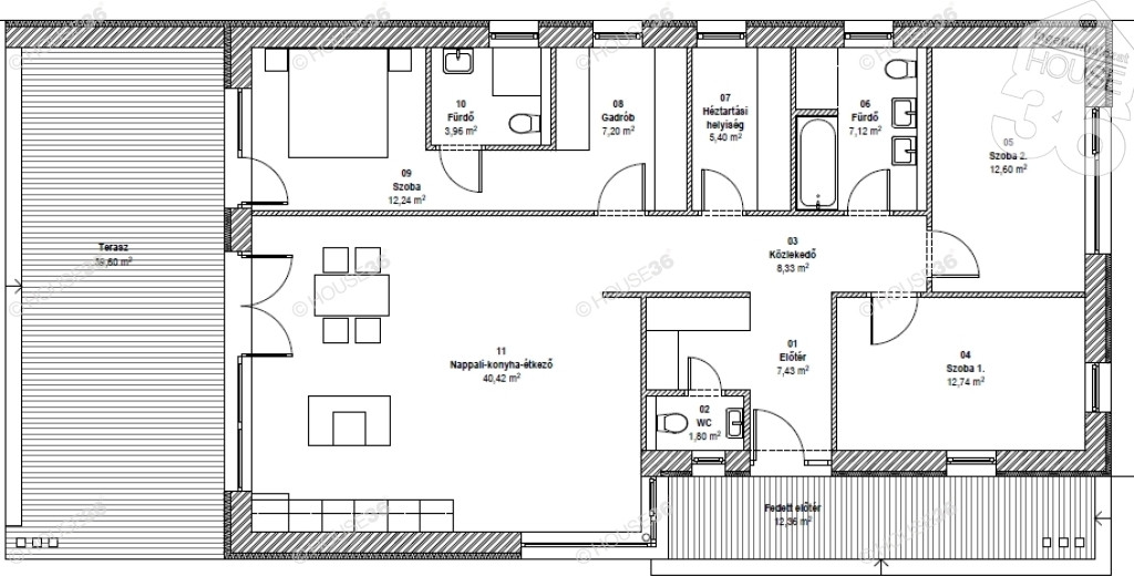 Eladó ÚJ nappali + 3 szobás 119,24 m2-es családi ház 39,6+12,36 m2-es terasszal!
