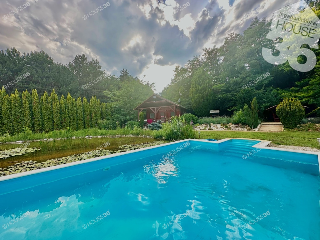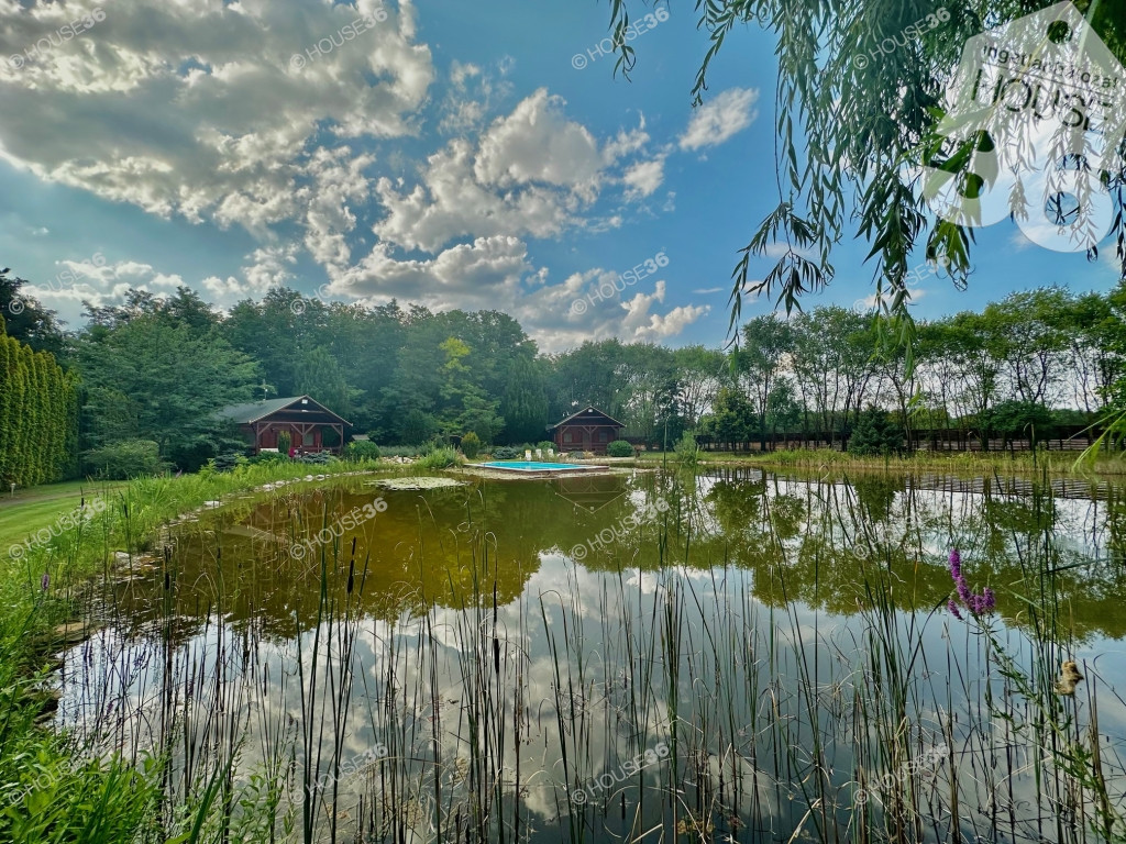 - Fenyőliget + kerti tó + tisztás teljesen körbekerítve, térkövezett utakkal, járdával