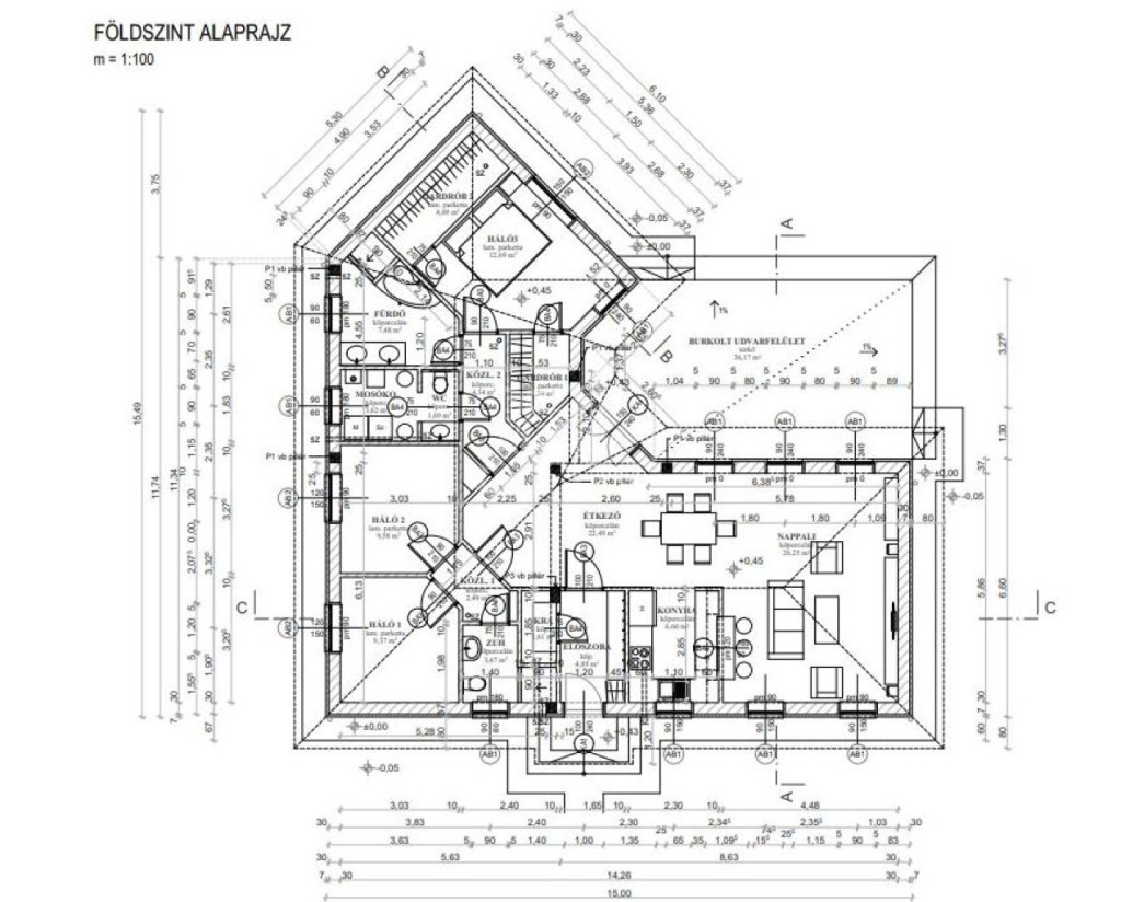 ✔ 126 m² lakótér