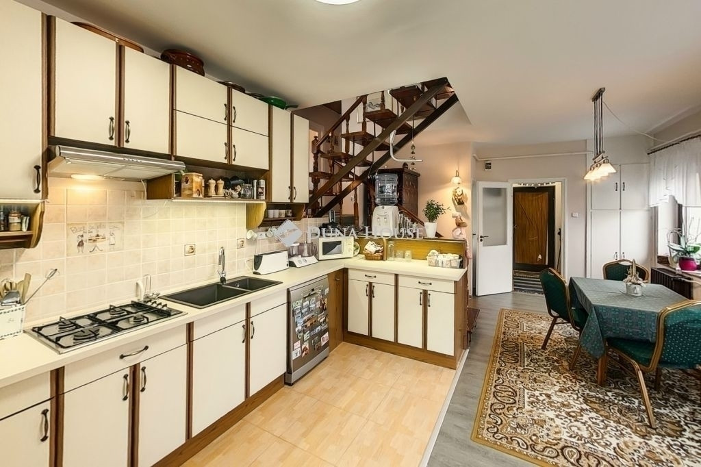 Az ingatlan 1989-ben épült, 120 m²-es, belső szinteltolásos kialakítású, nappali plusz három szobás jelenleg, de plusz egy nagy tetőtéri szoba kialakítására van lehetőség.
