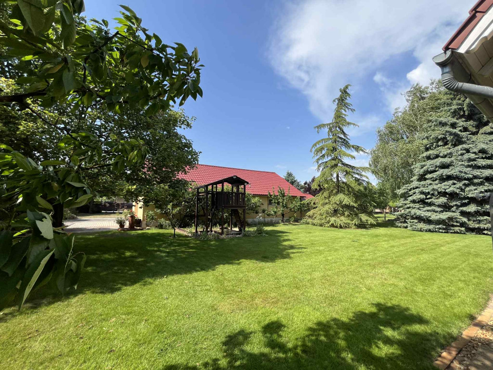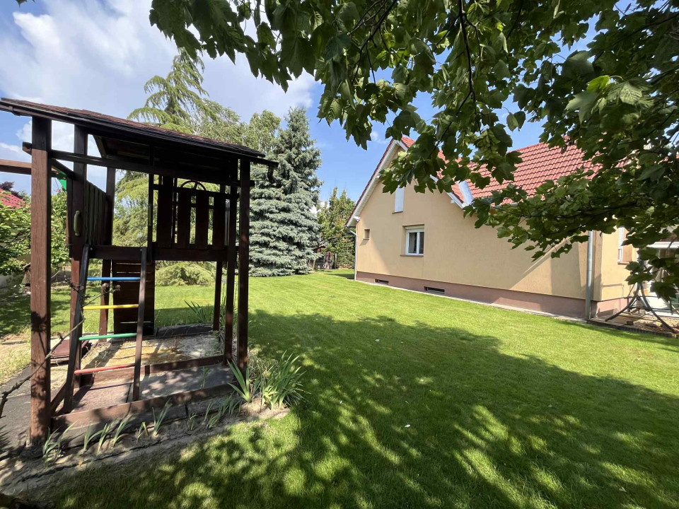 Az ingatlan egy 849 m2-es, szépen parkosított telken helyezkedik el, melynek gondozását automata öntözőrendszer segíti, így a kert mindig rendezett és ápolt képet mutat.