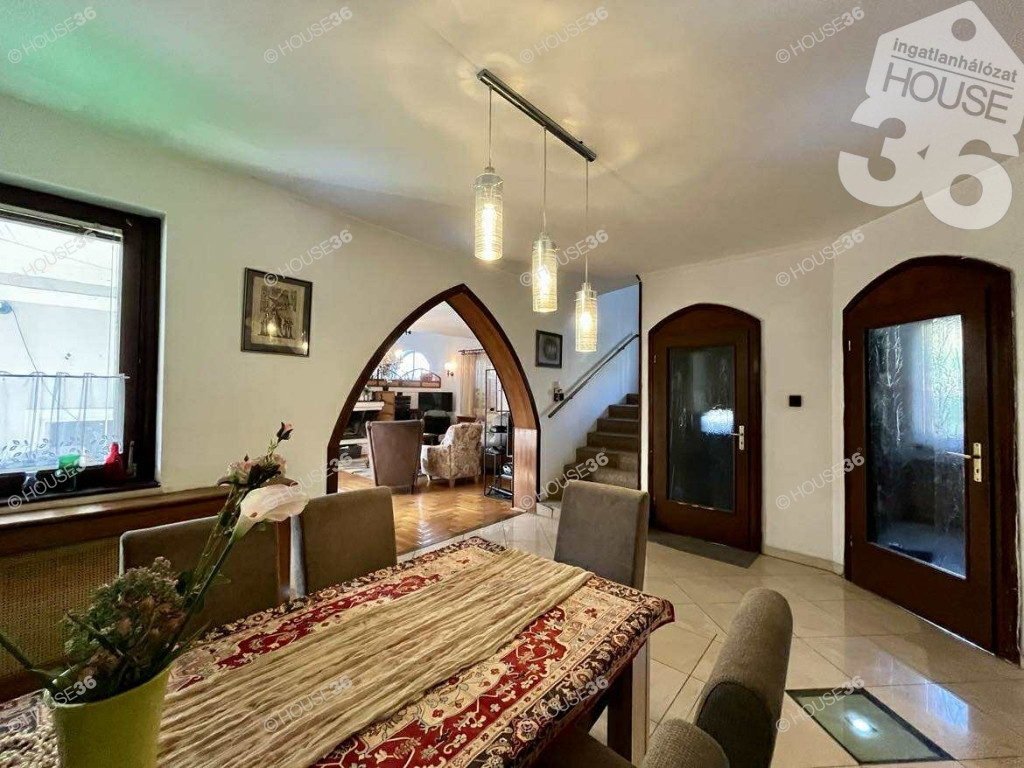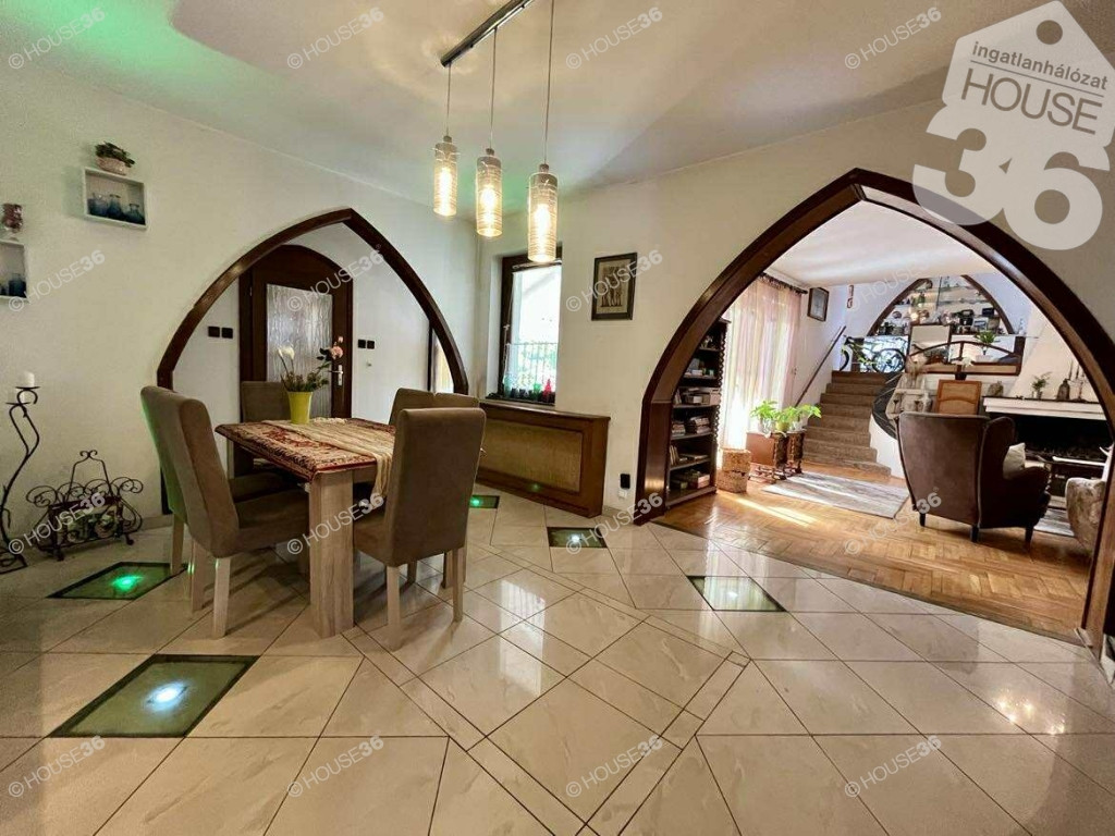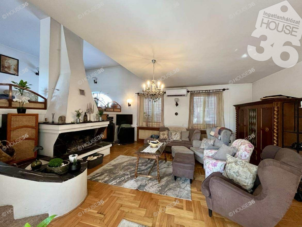 Kecskeméten a Vacsiköz méltán legértékesebb utcájában 590 m2 parkosított telken 360 m2-es felépítmény, nappali+galériaés 4 szobás családi ház eladó külön bejáratú apartmanlakással, garázzsal eladó.