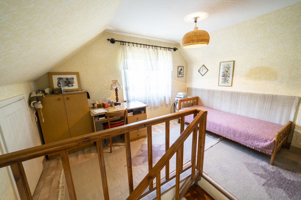 az emeleten 2 szoba található, melyből az egyik még pluszban felezhető, így 3 szoba kialakítható.