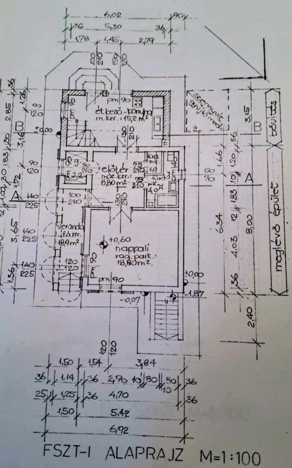 A fölszinten, nappali, konyha, fürdő és 20 nm-es szoba