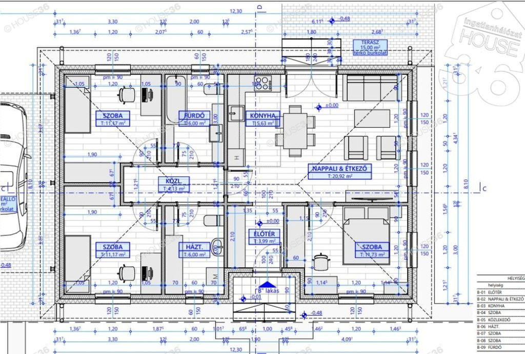 nappali + 3 szoba