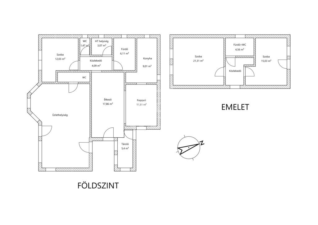 Emelet – A privát zóna: Az emelet a nyugodt pihenésé. Két tágas hálószoba és egy saját fürdőszoba kapott itt helyet.