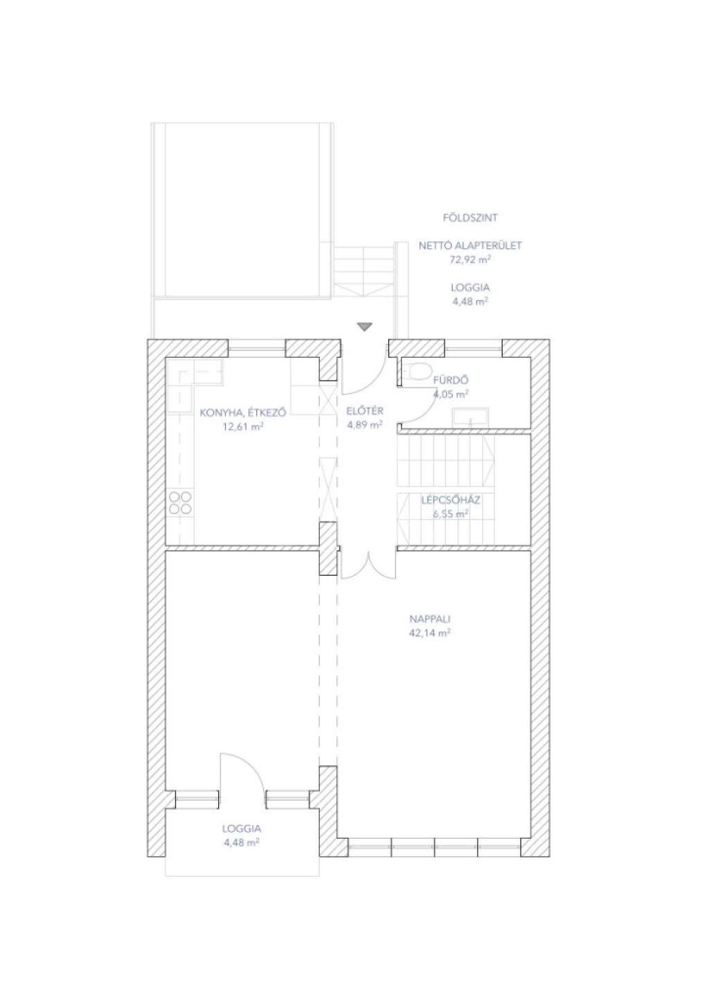 • Közvetlen lépcső a földszinti lakótérbe