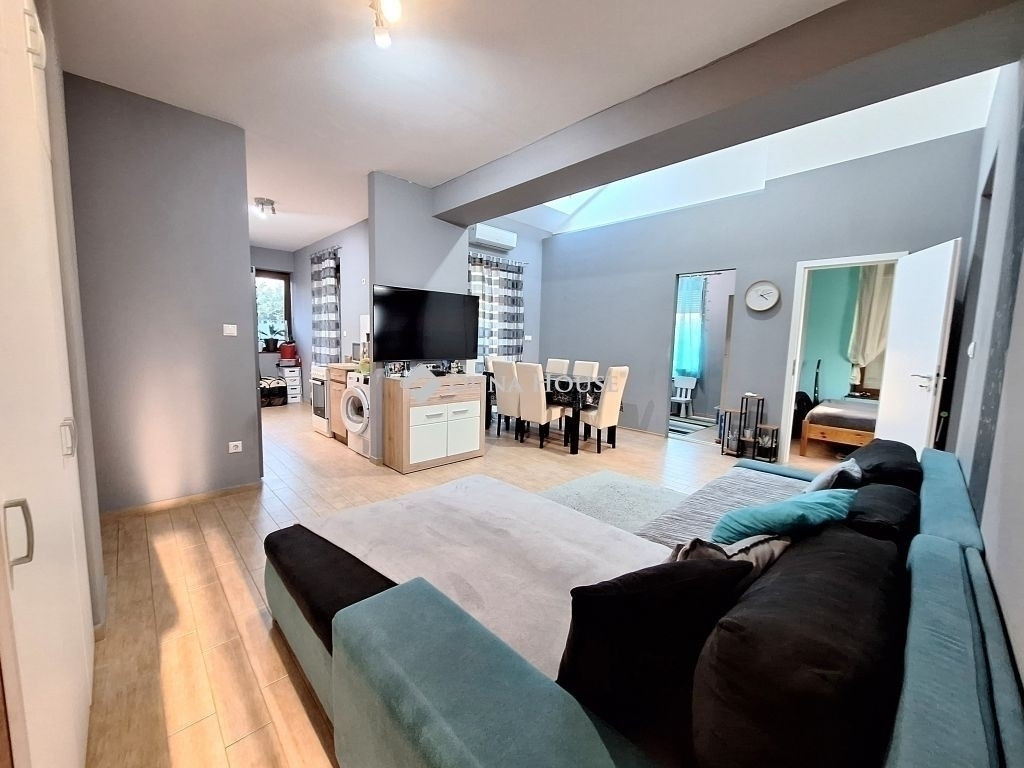 A házhoz tartozó parkosított kert automata öntözőrendszerrel ellátott, így a zöld környezet fenntartása egyszerű és kényelmes.