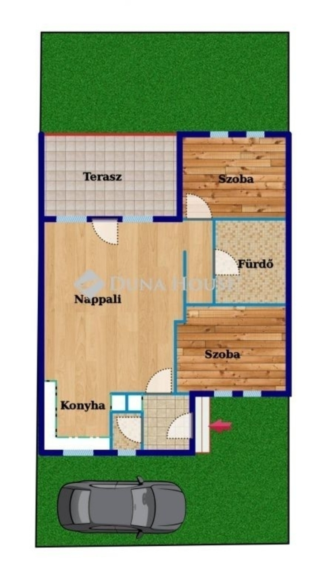 - Autóbeállás lehetősége közvetlen a ház előtt