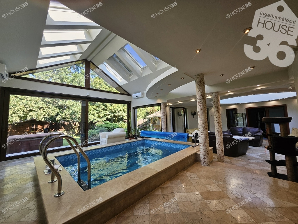 Kecskemét egyik legjobb utcájában, a Vacsiközben, 1166 m2-es dupla telken, kb.300 m2-es, tetőtér beépítéses, 2 nappali + 5 szoba + 2 fürdőszobás, igényesen berendezett és nívós anyagokból épült (mészkő, extra szigetelés), minden igényt-és extrát kielégítő luxus családi ház eladó!