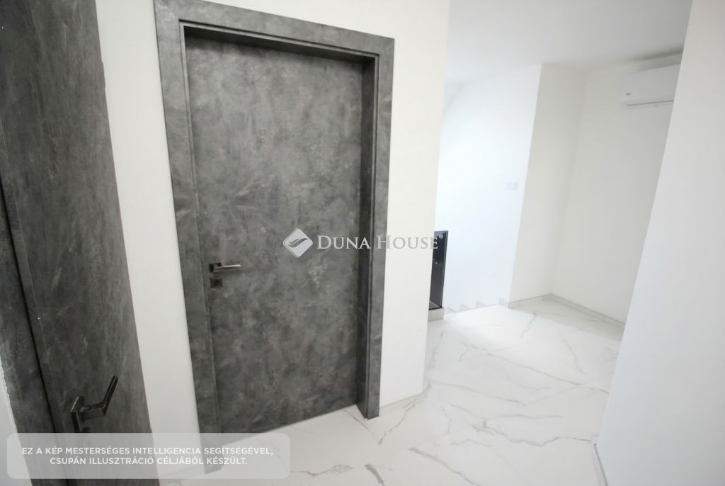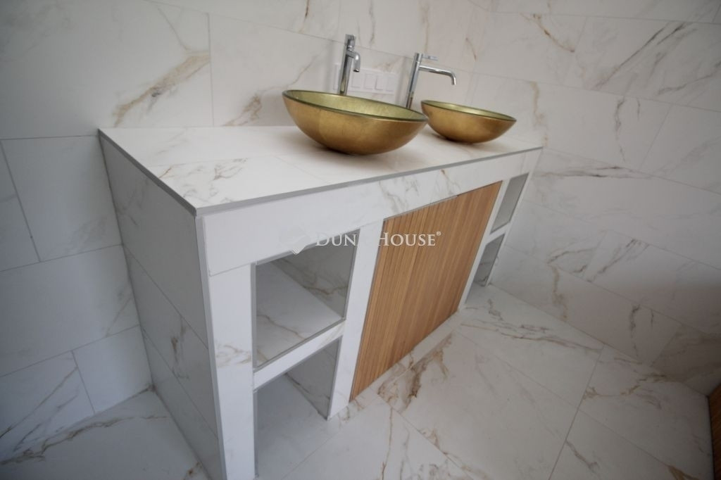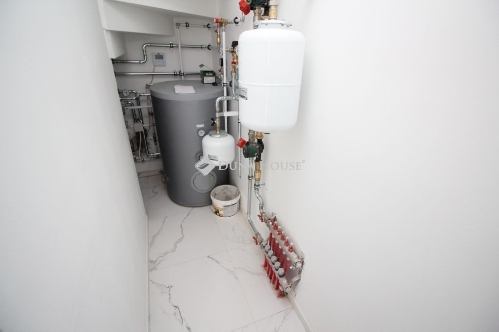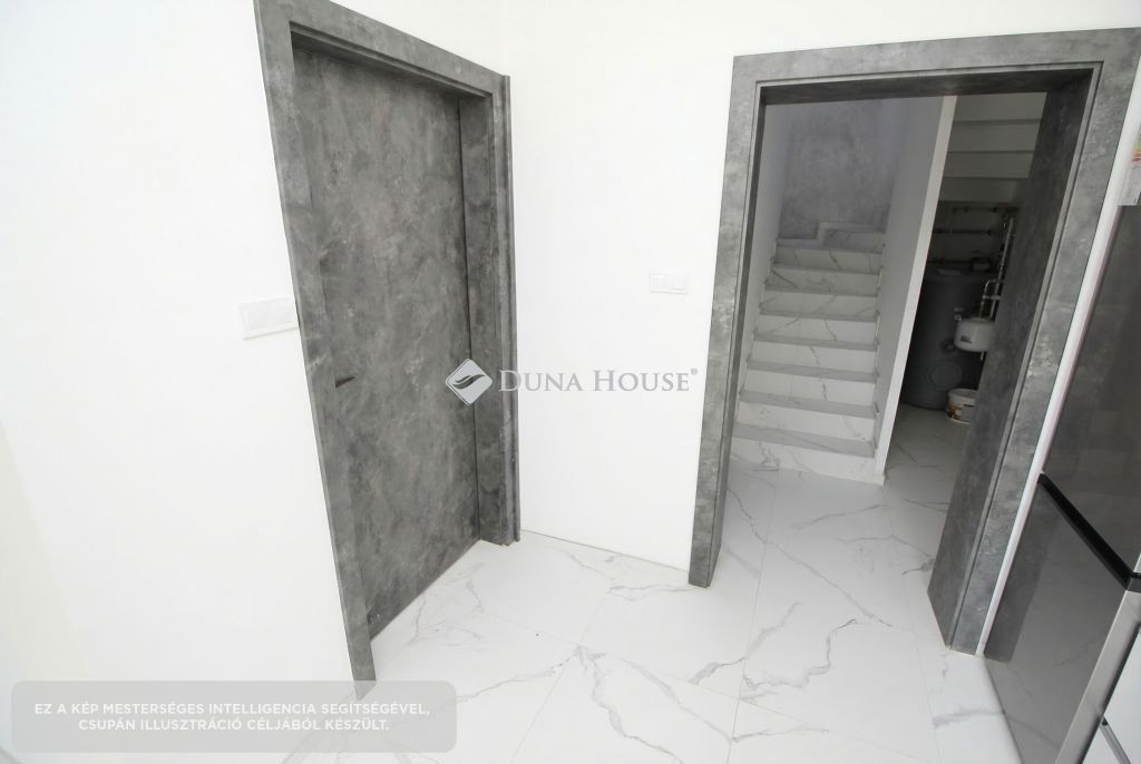 A földszinten egy tágas, amerikai konyha nappali került kialakításra, valamint egy különleges adottságú, igényesen kialakított fürdőszoba található. A prémium minőségű, egyedi tervezésű konyha teljesen felszerelt, a beépített gépekkel együtt a vételár részét képezi. Az emeleten három hálószoba és egy külön WC kapott helyet.A belső tereket gyönyörű dekorfalak és magas minőségű, gondosan kiválasztott burkolatok teszik igazán elegánssá. A teraszok időjárásálló WPC burkolattal készültek, amelyek tartós és esztétikus megoldást biztosítanak.A ház fűtéséről hőszivattyús rendszer gondoskodik H tarifa igénybevételével, a teljes ingatlanban padlófűtéssel.