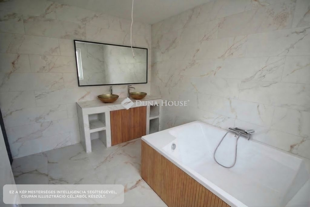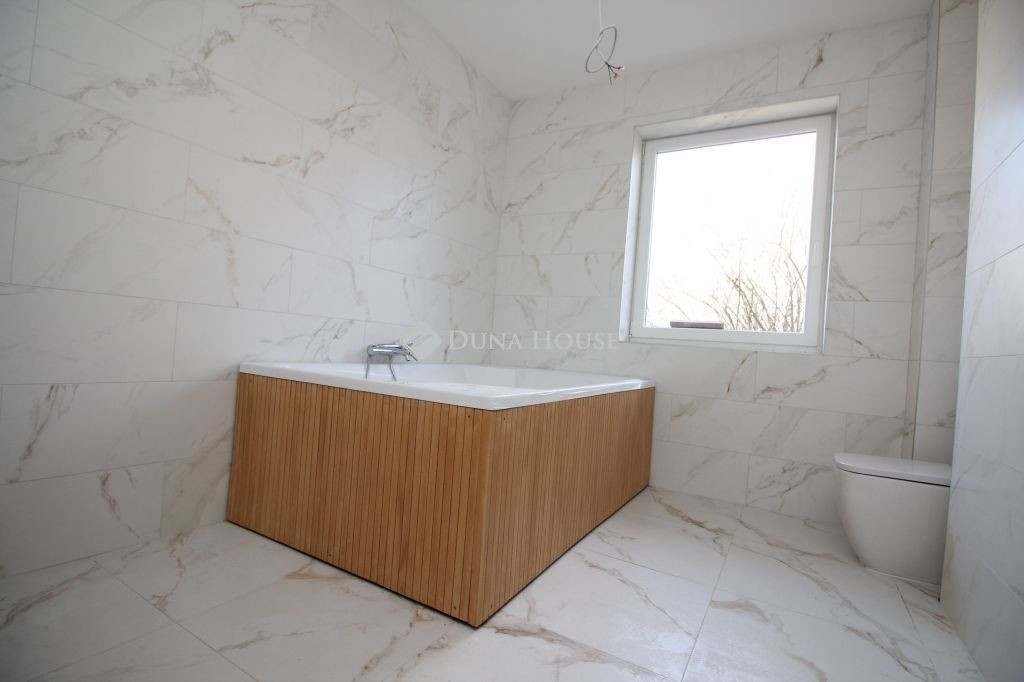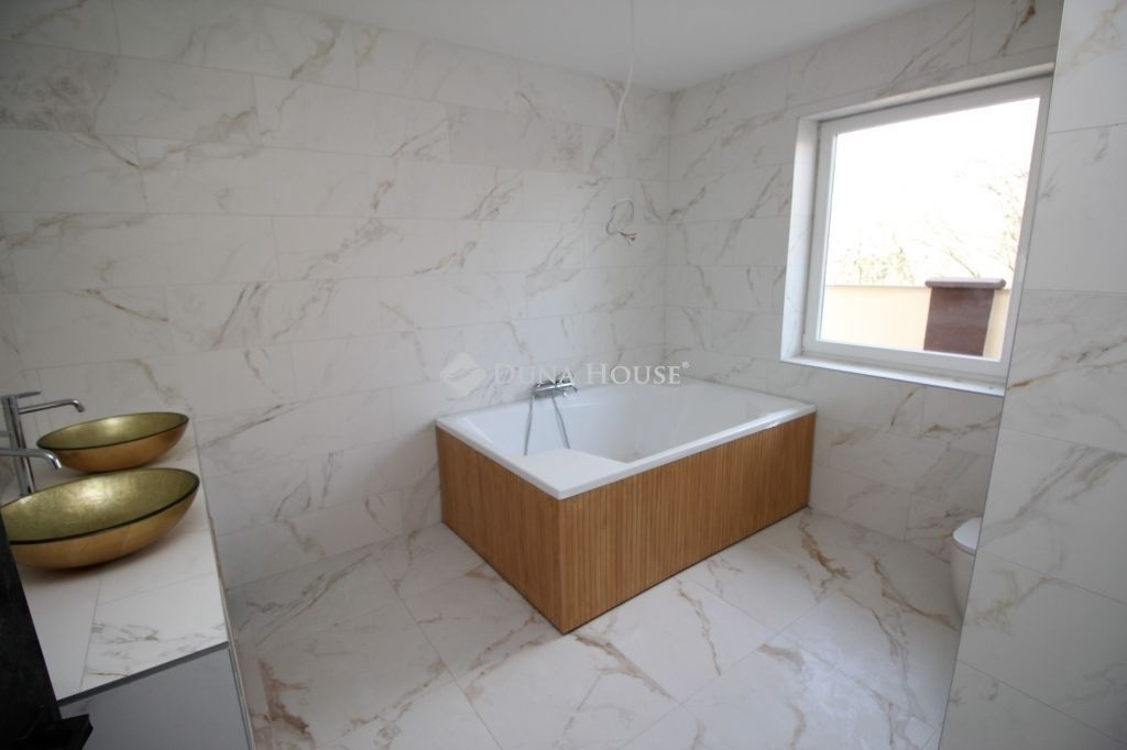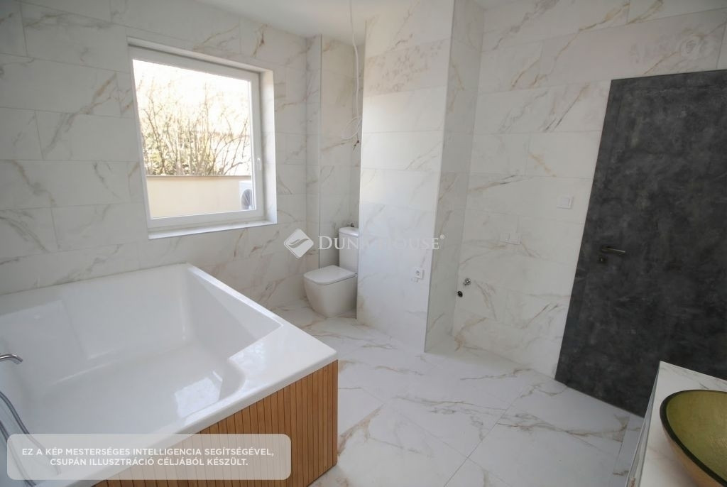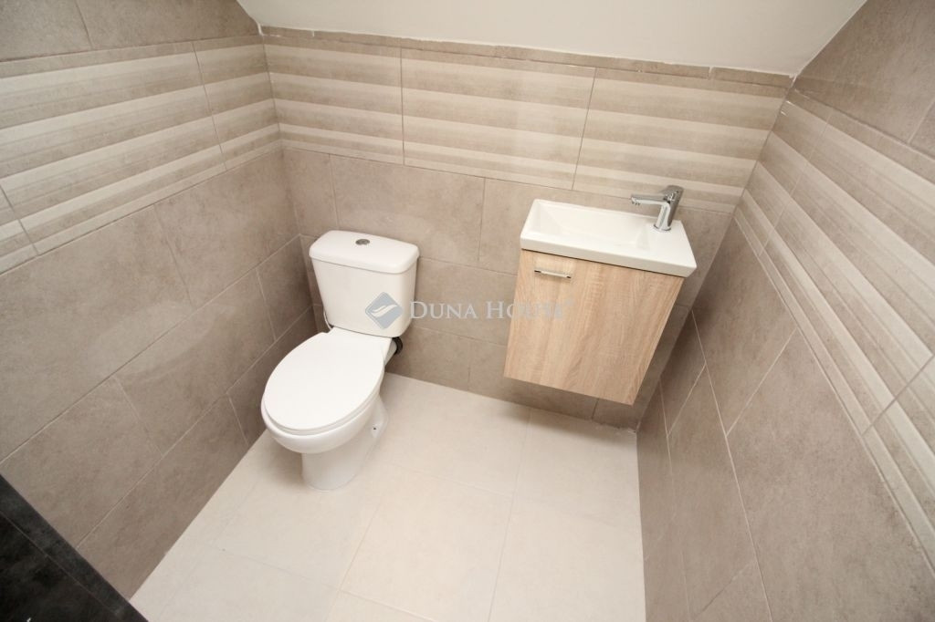 A földszinten egy tágas, amerikai konyha nappali került kialakításra, valamint egy különleges adottságú, igényesen kialakított fürdőszoba található. A prémium minőségű, egyedi tervezésű konyha teljesen felszerelt, a beépített gépekkel együtt a vételár részét képezi. Az emeleten három hálószoba és egy külön WC kapott helyet.A belső tereket gyönyörű dekorfalak és magas minőségű, gondosan kiválasztott burkolatok teszik igazán elegánssá. A teraszok időjárásálló WPC burkolattal készültek, amelyek tartós és esztétikus megoldást biztosítanak.A ház fűtéséről hőszivattyús rendszer gondoskodik H tarifa igénybevételével, a teljes ingatlanban padlófűtéssel.